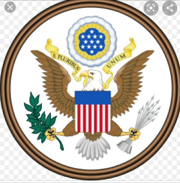 "Bu da Amerika Birleşik Devletleri'nin ilk resmi sloganıdır. Latince (Roma İmparatorluğu’nun resmi dili) olan bu slogan çokluktan birliğe anlamına gelir. Bu slogan ABD'yi oluşturan 13 koloninin birliği anlamında kullanılmıştır. Kartalın sağ pençesinde zeytin dalı, solunda 13 oktan oluşan sıkıca çekilmiş bir demet bulunmaktadır. Bu sembollerin 'barış ve savaşın gücü'nü temsil ettiği bilinmektedir. Kartalın gagasında ilk komitenin sloganı olan 'E Pluribus Unum' yazılı bir parşömen görülmektedir. Kartalın göğsünde bulunan ve eyaletleri temsil eden kalkan, federal hükümet arasındaki birliğe işaret etmektedir. Kartalın başının üzerinde 13 yıldızdan oluşan parlak takım yıldızı kullanılmıştır."