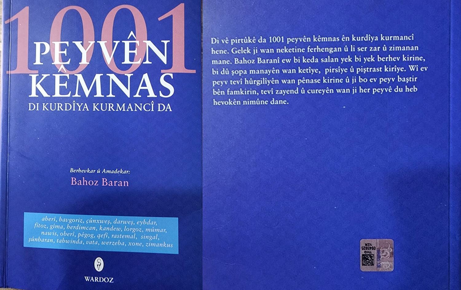 Bahoz Baran'ın yeni eseri “1001 Payvên Kêmnas Di Kurdîya Kurmancî da". Kapak ve arka sayfa görüntüsü.