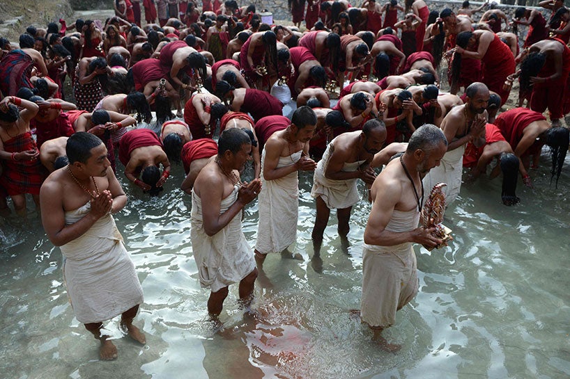 AFP - Nepal'de her yıl geleneksel Swasthani Festivali düzenleniyor. Festival’de yüzbinlerce Hindu, sabaha karşı nehirlere girip günahlarından arınıyor.