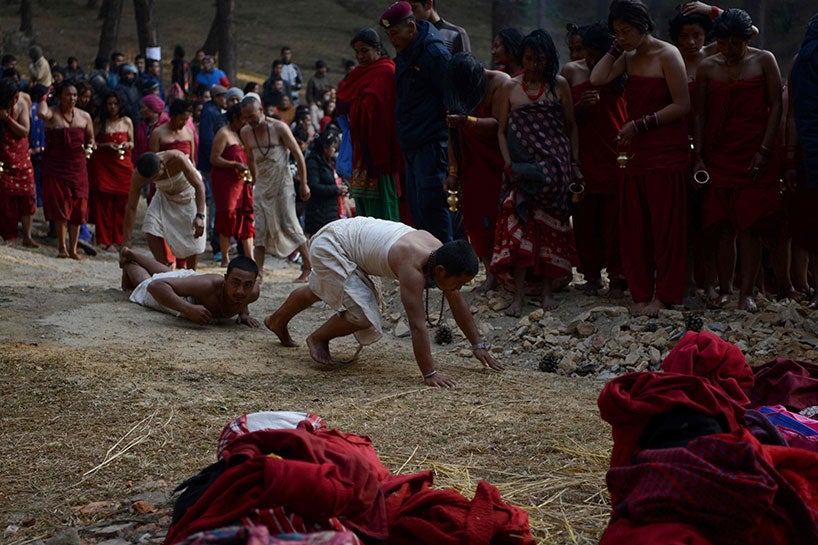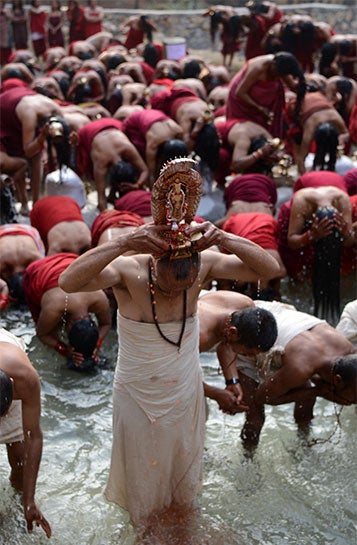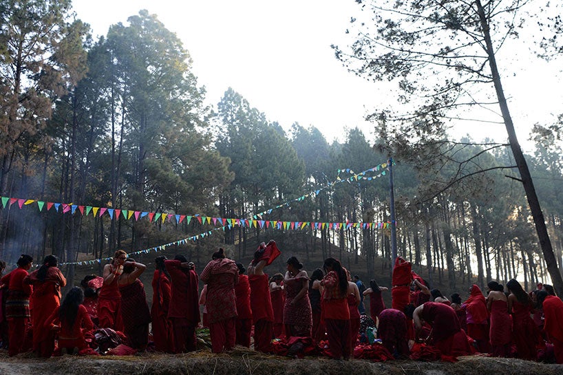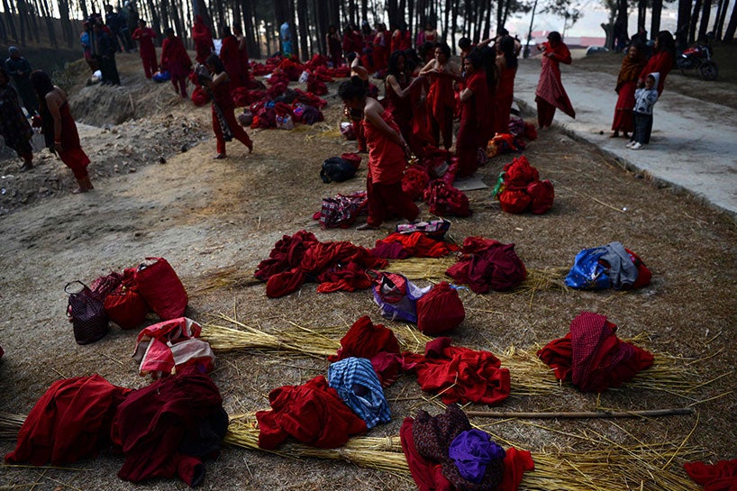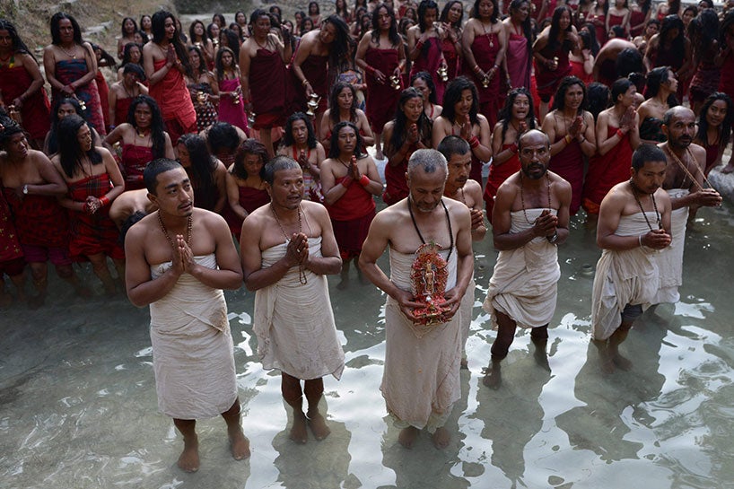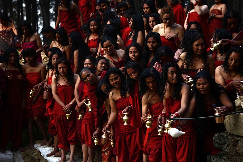 Kadınların durumu ise biraz daha farklı. Kırmızı giyimli kadınlar, nehrin kenarına gelip, suya toplu olarak giriyorlar. Bu kadınların evli olanları evliliklerinin bitmemesi için, bekar olanlar da iyi bir eş bulmak için bunu yapıyor.