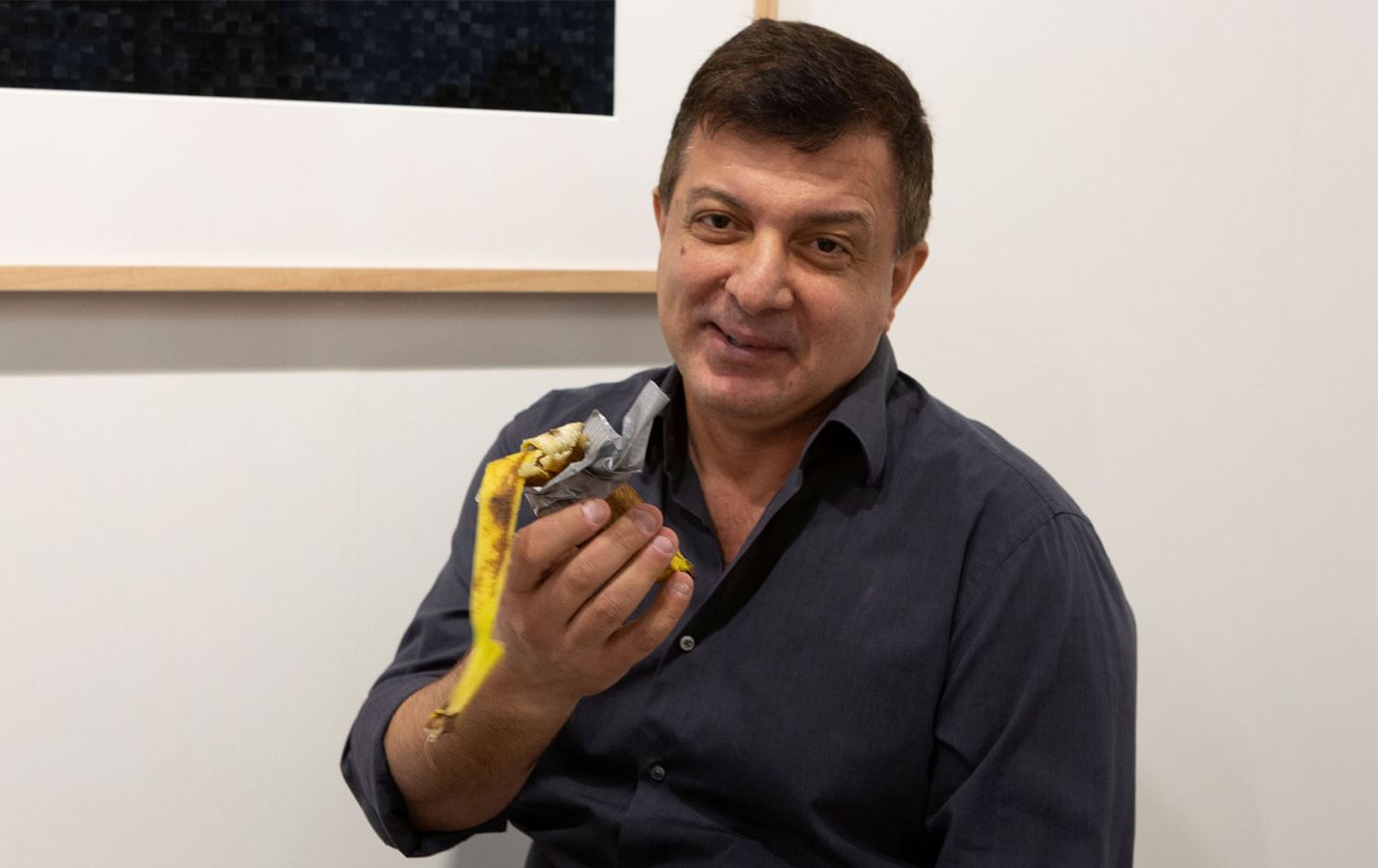 Haber Merkezi – Geçtiğimiz pazar günü İtalyan sanatçı Maurizio Cattelan’ın “Komedeyen” adını verdiği ve 120 bin dolara Fransız bir koleksiyoncuya satılan eseri, performans sanatçısı David Datuna yedi.