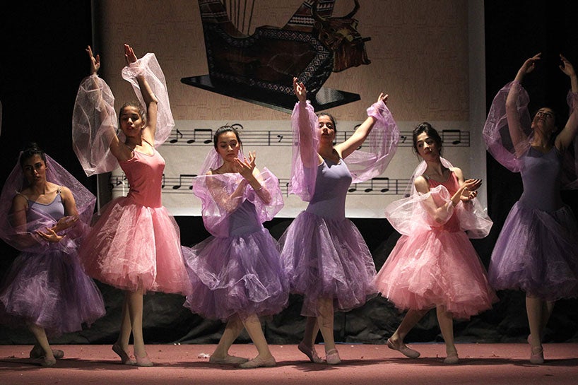AFP – Bağdat’ta müzik ve bale eğitimi alan öğrenciler, performanslarını sahneye çıkararak sergiledi.