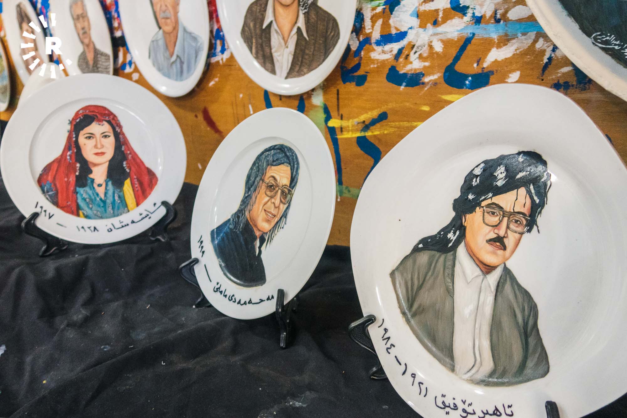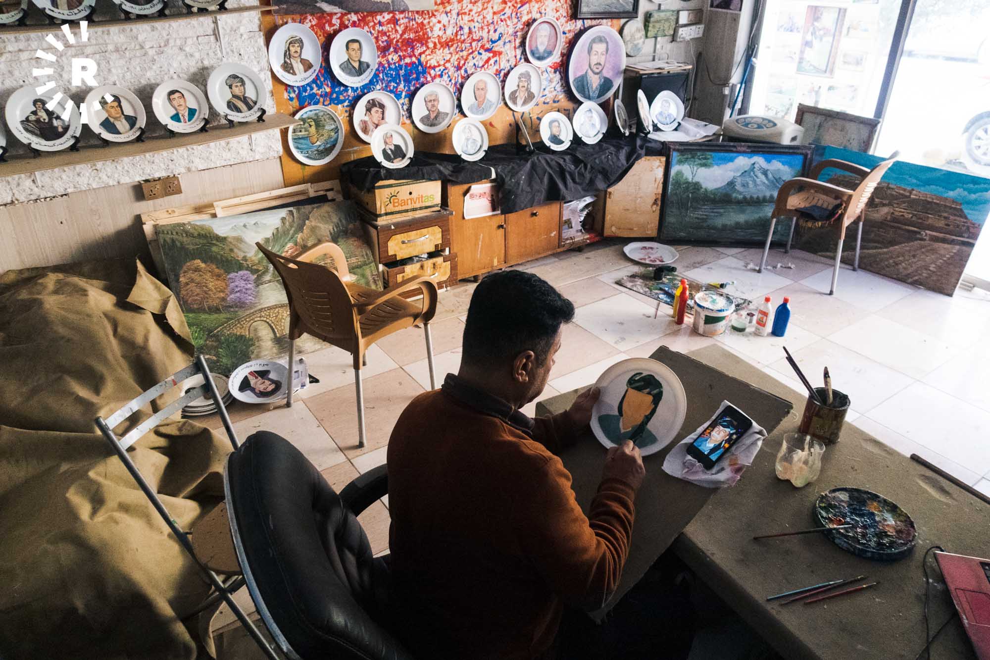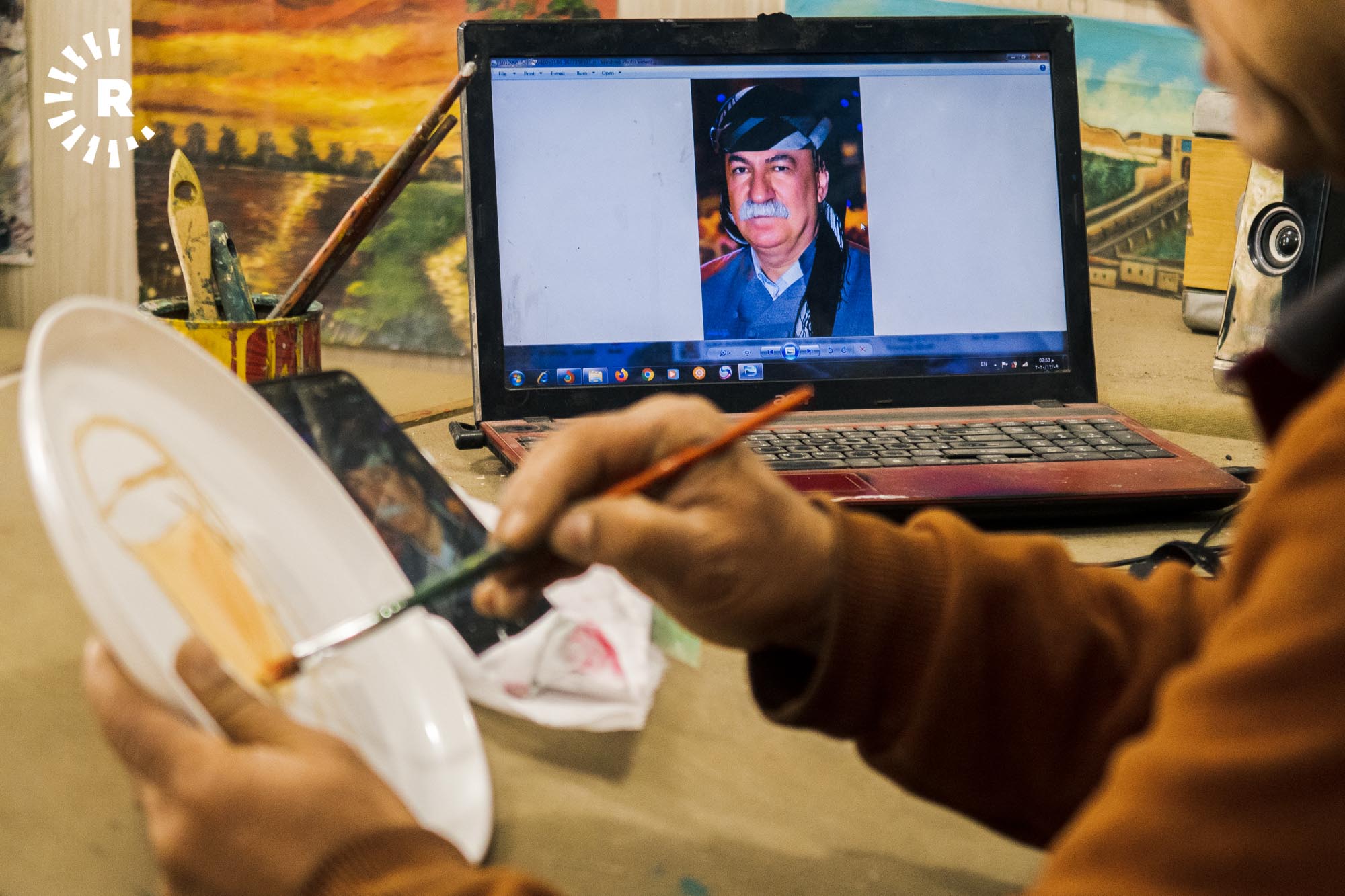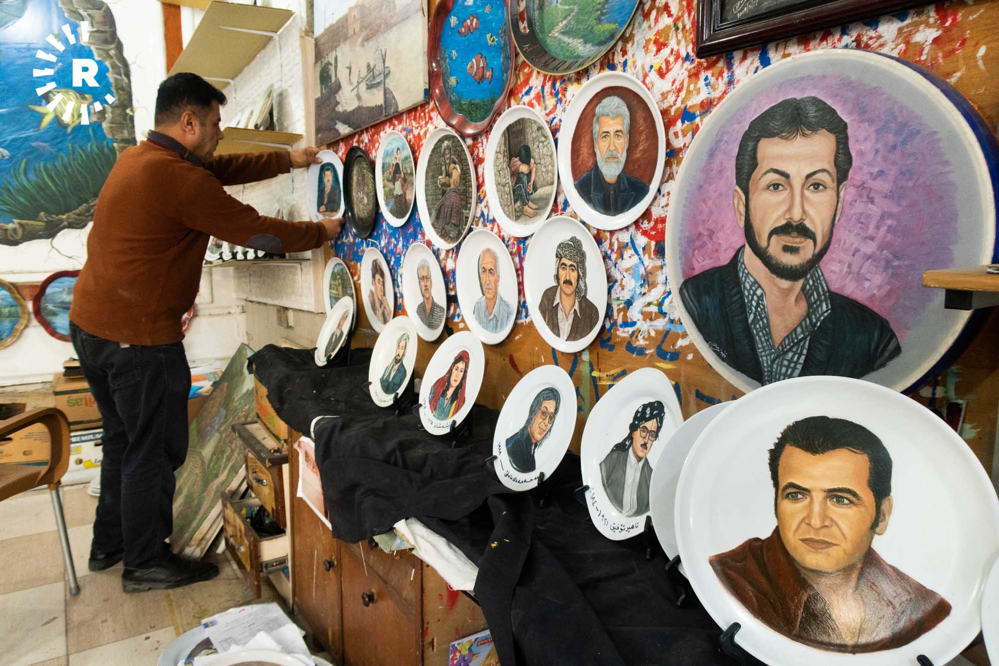 Erbil (Rûdaw) – Ressam Şêrwan Abdulaziz, ünlü Kürt sanatçıların resimlerini porselen ve plastik tabaklara işliyor.