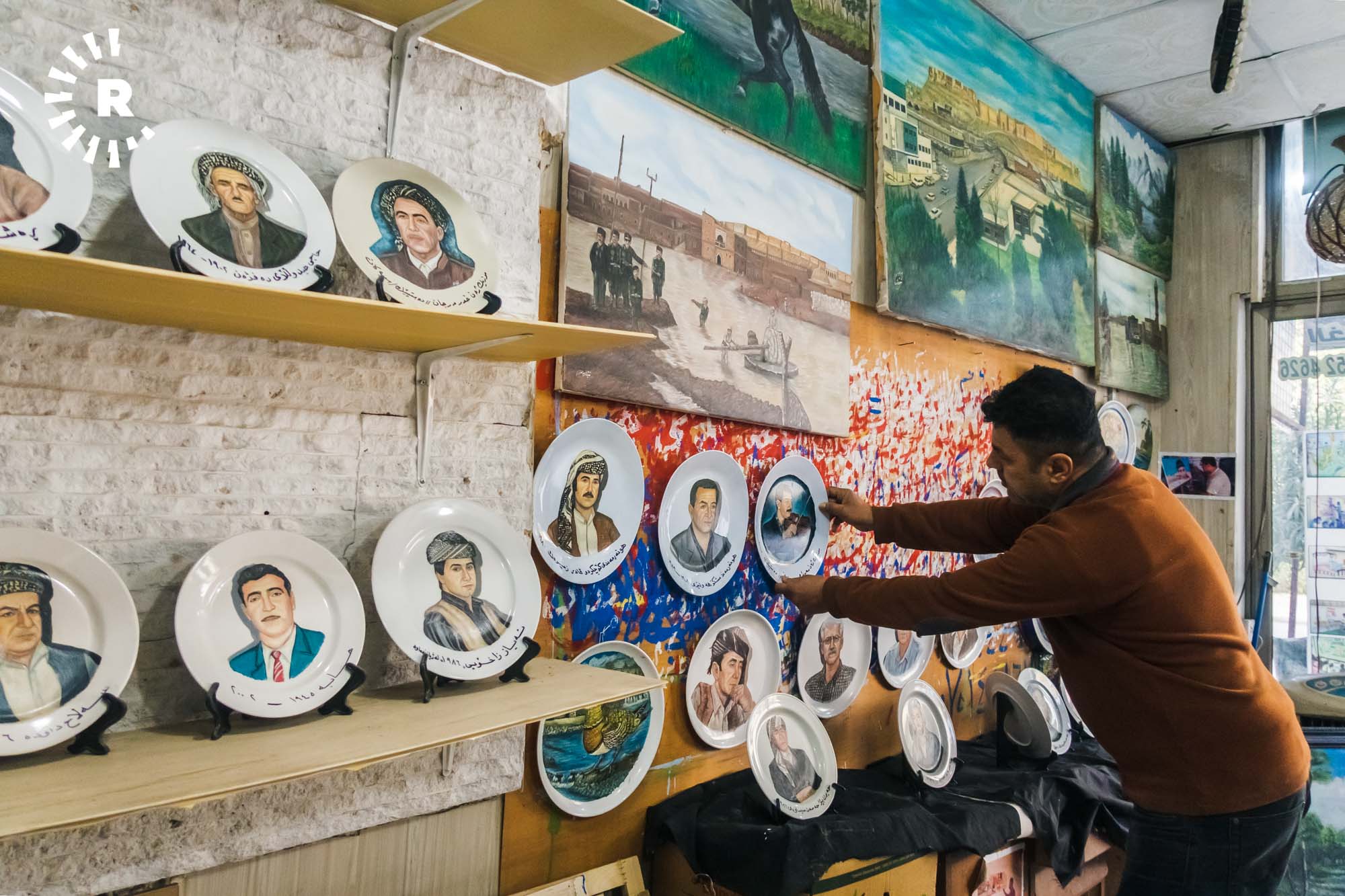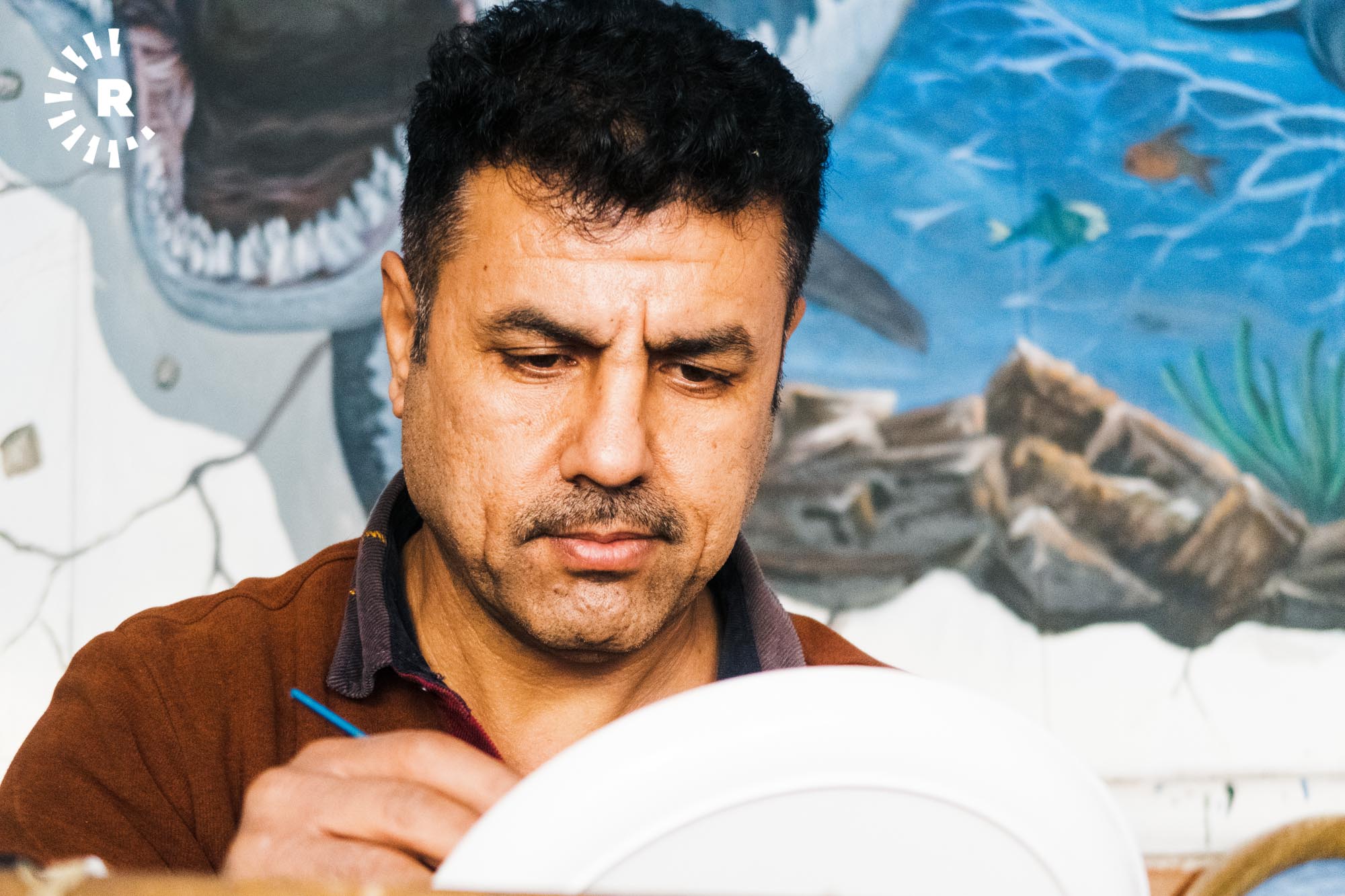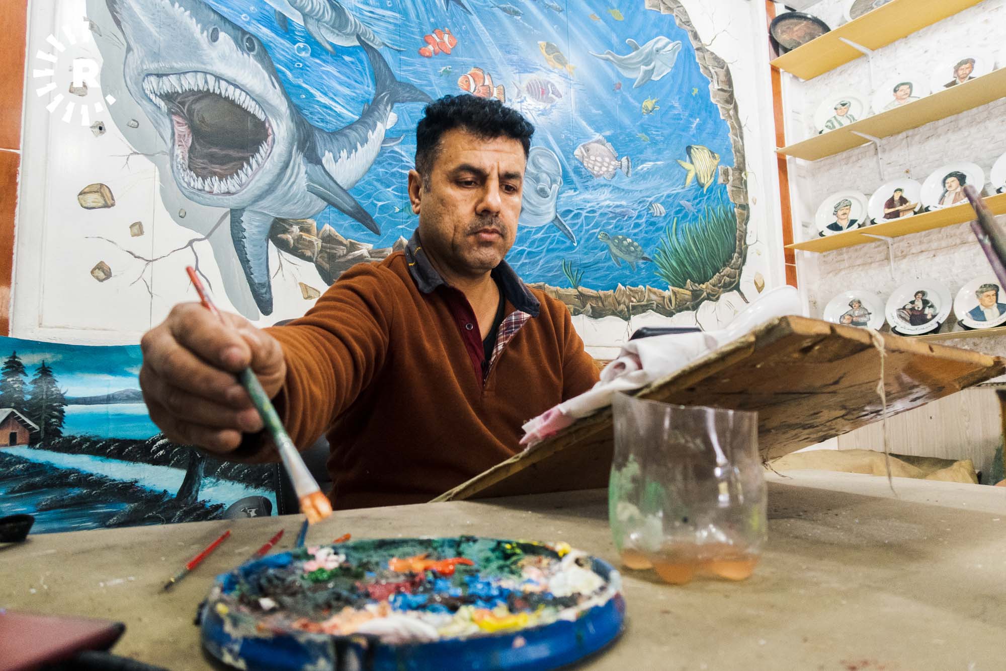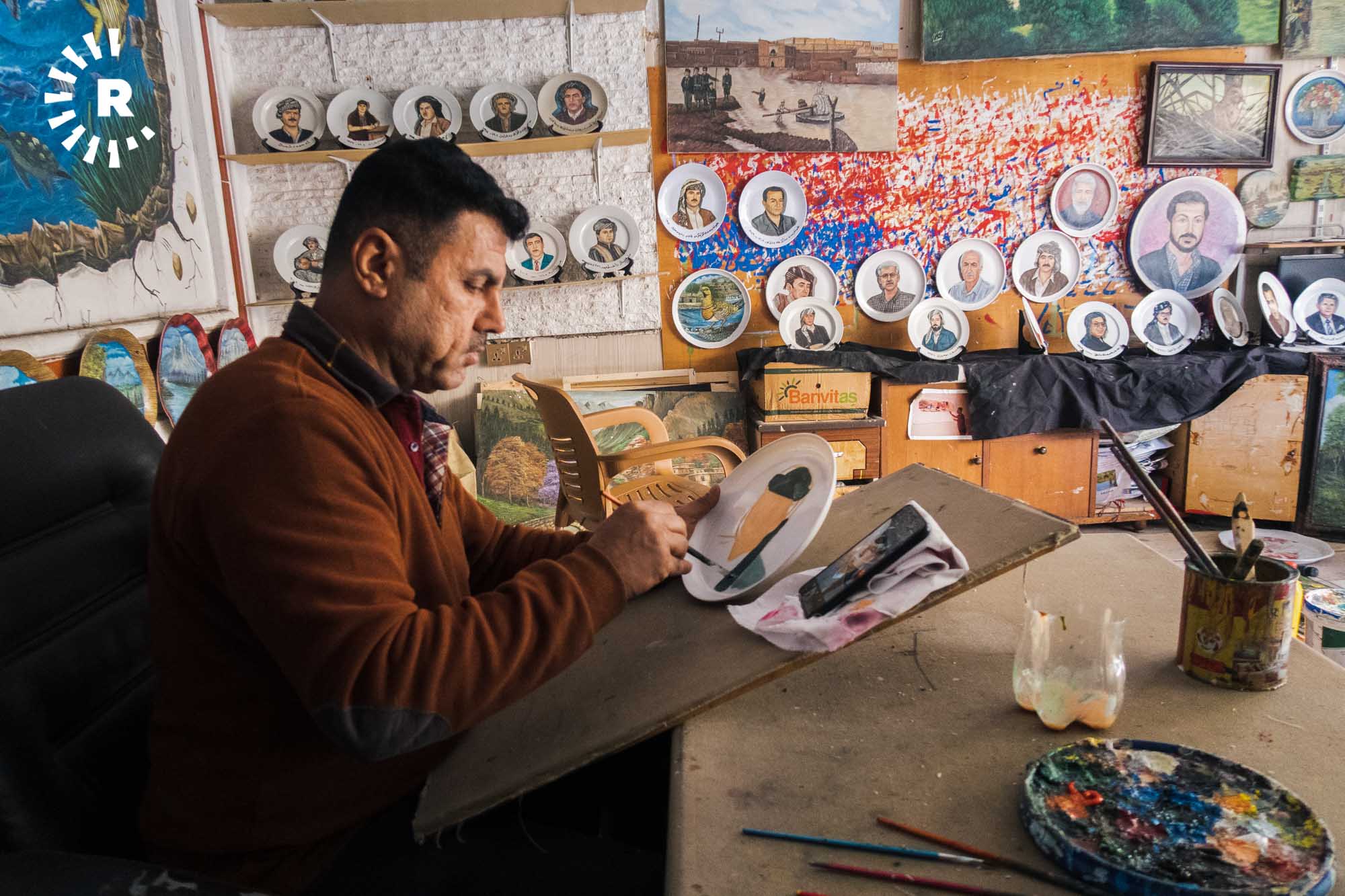 Erbil (Rûdaw) – Ressam Şêrwan Abdulaziz, ünlü Kürt sanatçıların resimlerini porselen ve plastik tabaklara işliyor.