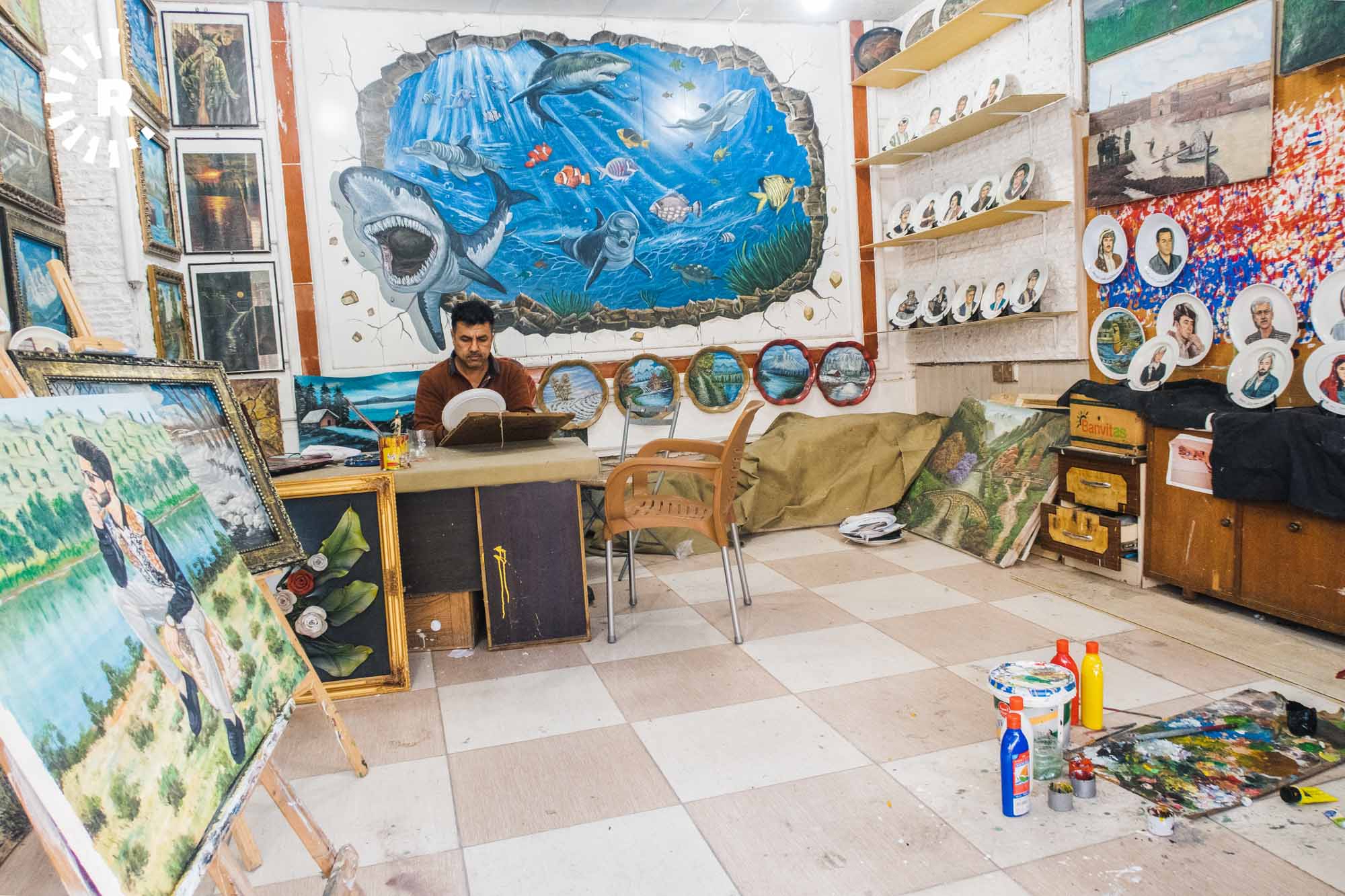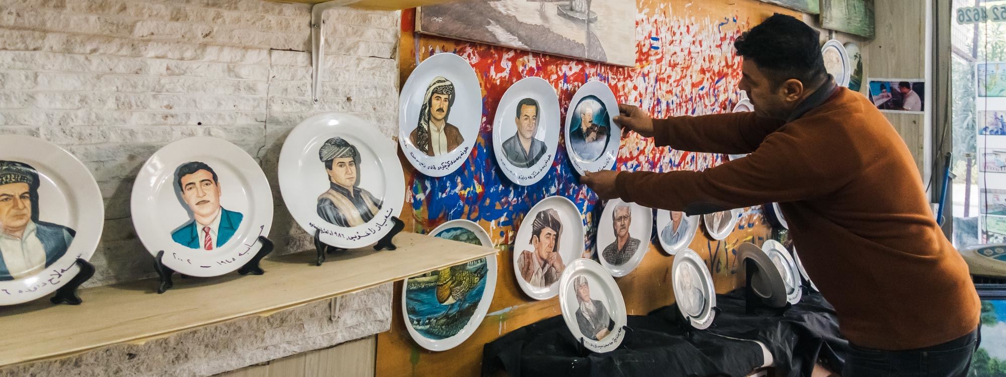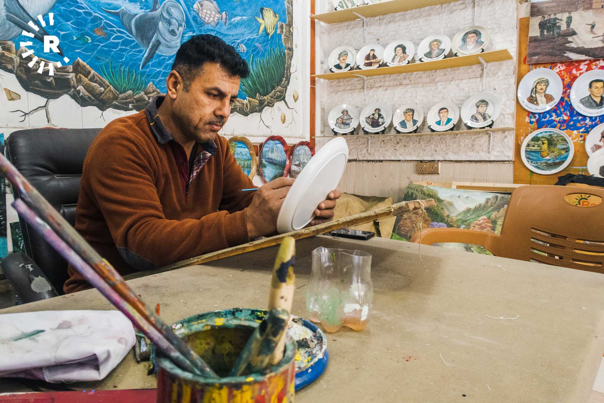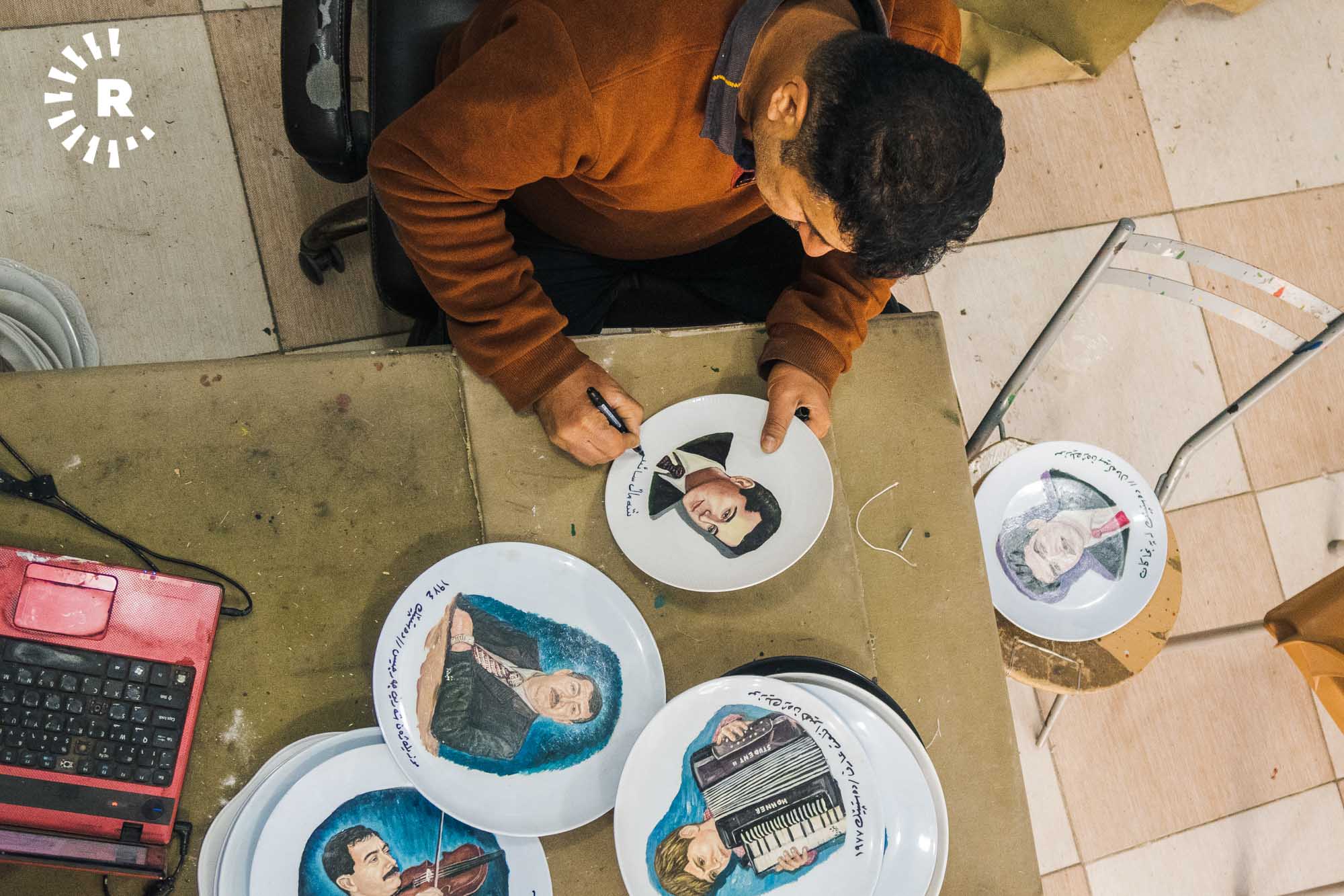 Erbil (Rûdaw) – Ressam Şêrwan Abdulaziz, ünlü Kürt sanatçıların resimlerini porselen ve plastik tabaklara işliyor.