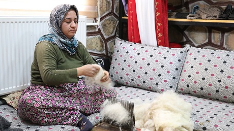 Atölyede görevli usta Leyla Çekin de kök boyayla renklendirilen tiftiğin bazı aşamalardan geçtiğini ve ardından tezgahta dokunarak kumaş haline getirildiğini belirtti.