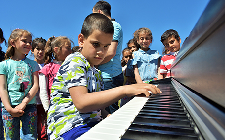 Kusursuz kulak Bager, bu alanda köy okulundaki öğrencilere piyano ile klasik müzik dinletisi sundu.
