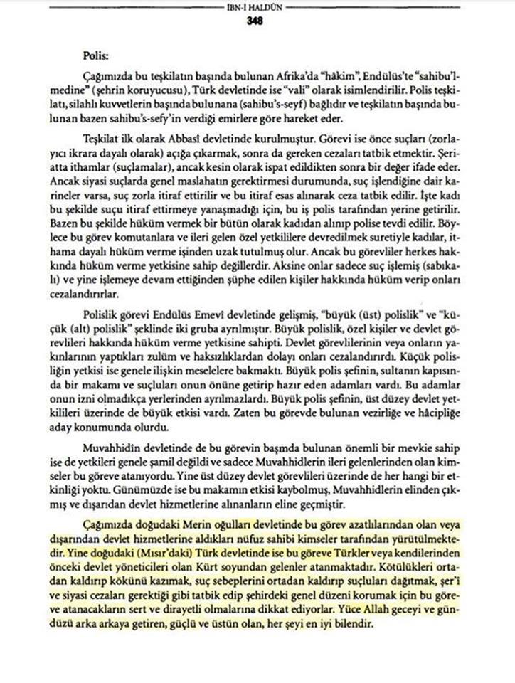 Kitapta yer alan, “(Mısır'daki) Türk devletinde ise (Memlüklüler) bu göreve Türkler veya kendilerinden önceki devlet yöneticileri olan Kürt soyundan (Eyyubiler) gelenler atanmaktadır” ifadeleri, “Türk devletlerinde ise bu memurluk Türklerin büyük devlet adamları ve onlardan önce hükümet sürenlerin evladı elindedir” şeklinde değiştirildi.