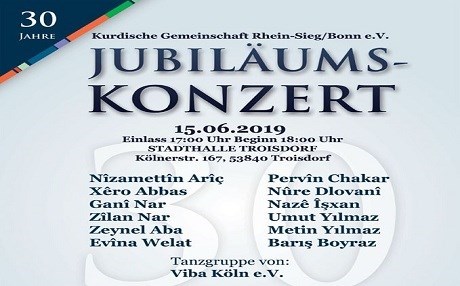 Dusseldorf (Rûdaw) - Almanya’daki Siegburg - Bonn Kürt Topluluğu, 30’uncu kuruluş yıl dönümünü düzenleyeceği büyük bir konserle kutlayacak. Rûdaw Medya Grubu konserin mali sponsorluğunu üstlendi.