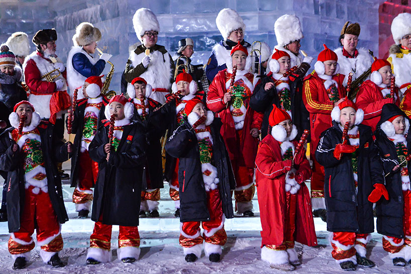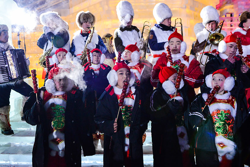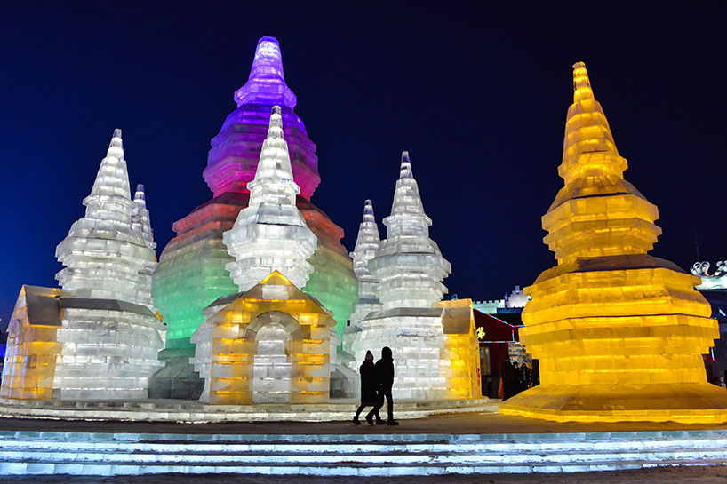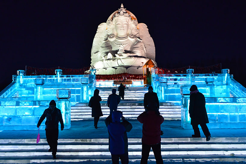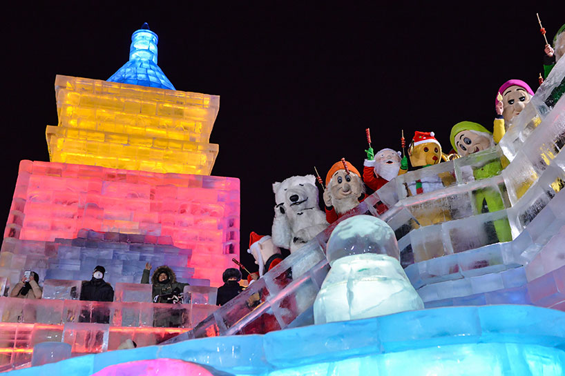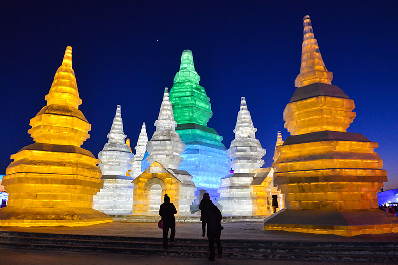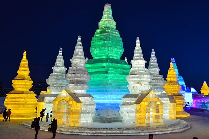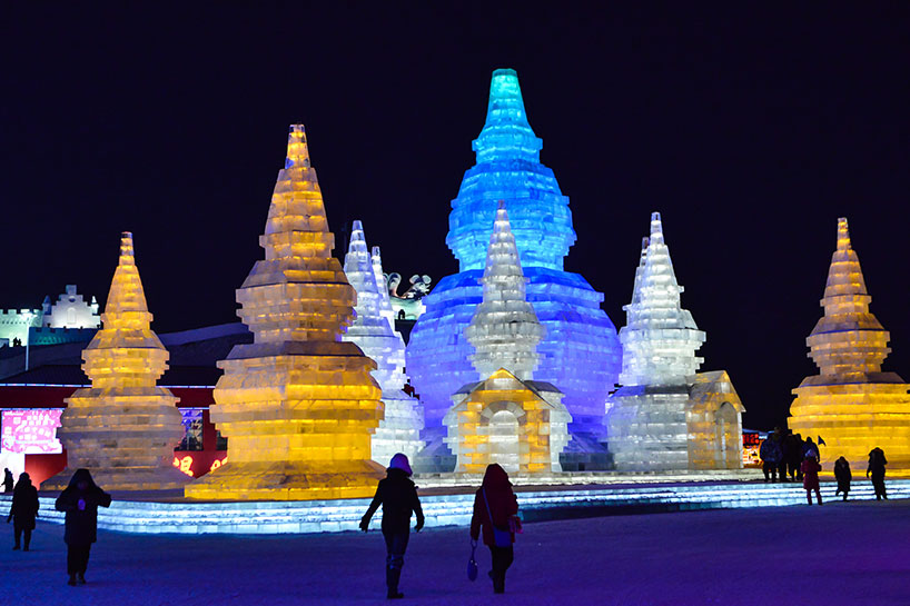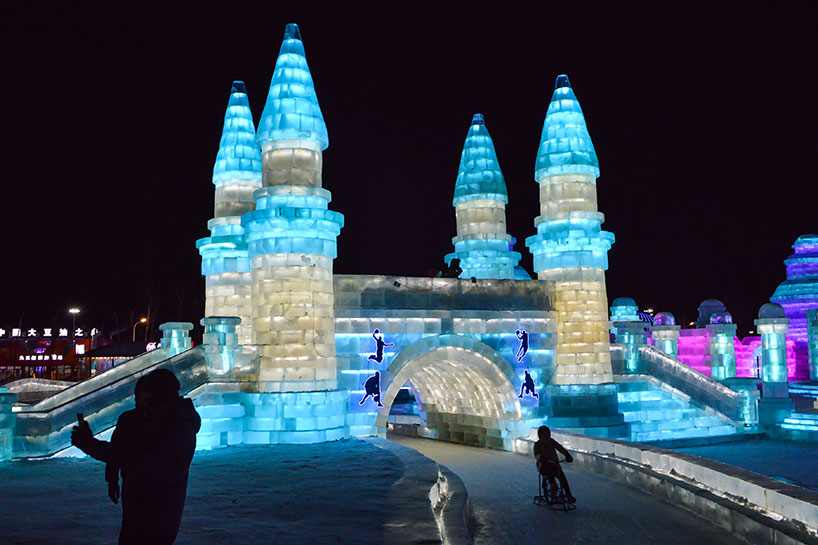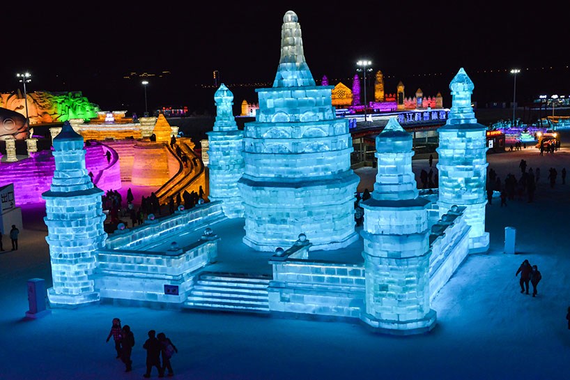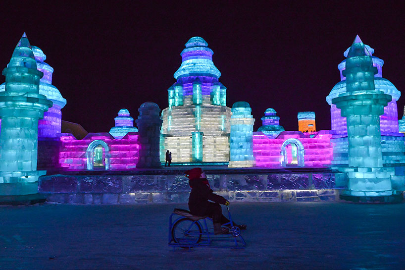 Kar ve buzdan oluşan heykeller, binalar, kaydıraklar, şatoların sergilendiği Harbin Buz Festivali’nde en yeni lazer teknolojileriyle, en eski buz oyma teknikleri bir arada kullanılıyor.