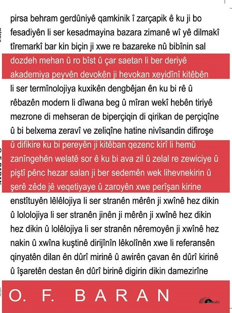 Şair Ömer Faruk Baran, dünyanın en uzun isimli Kürtçe kitabını yazdı. Baran’ın kitabının ismi 180 kelimeden oluşuyor ve isim, kitabın ön kapağının tümünü kaplıyor. Baran, kitabın ismi uzun olduğu için kendi ismini kısaltarak, O.F. Baran olarak yazdı.
