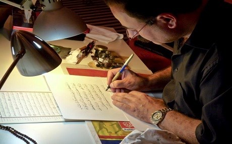 Dubai (Rûdaw) – Kürt Hattat Bıjar Hewleri, Birleşik arap Emirlikleri (BAE) Devlet Başkanı için el yazması bir Kur’an-ı Kerim hazırlıyor.