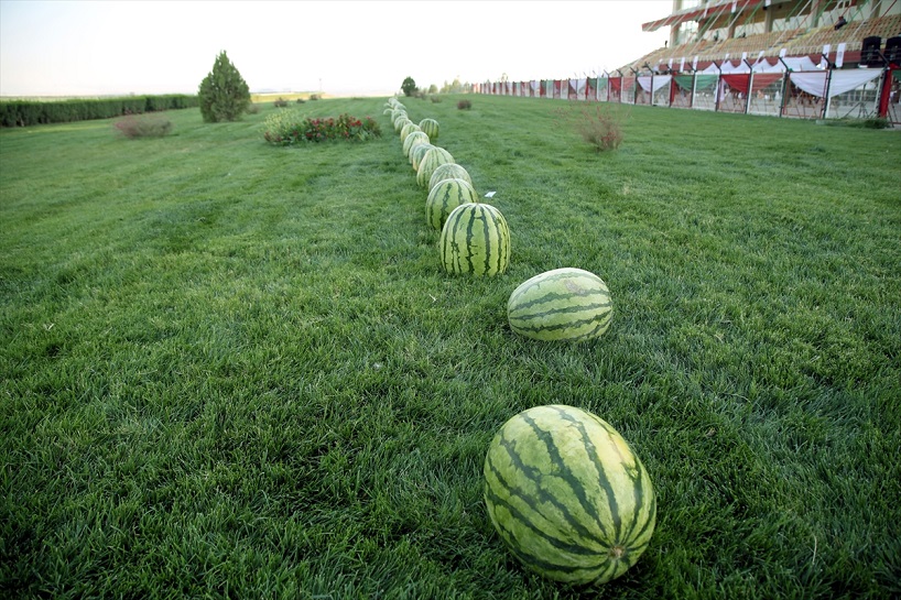 Diyarbakır Hipodromu'nda gerçekleştirilen etkinlikte karpuzlara farklı figürler yapıldı.