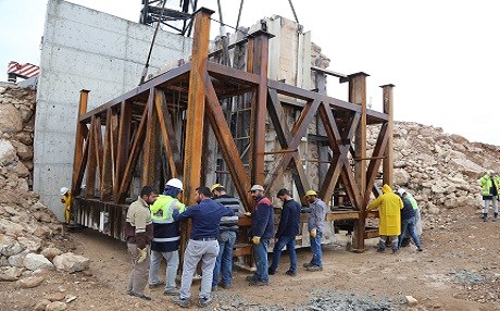 Proje kapsamında önceki gün üç bölüm halinde 96 tekerlekli, kendinden tahrikli modüler sistem (SPMT) aracı ile 5 kilometre mesafede taşınan yaklaşık 400 ton ağırlığındaki Hasankeyf Kalesi Orta Kapısı'nın 130 ton ağırlığındaki taban kısmı, Hasankeyf Müzesi girişine indirildi.