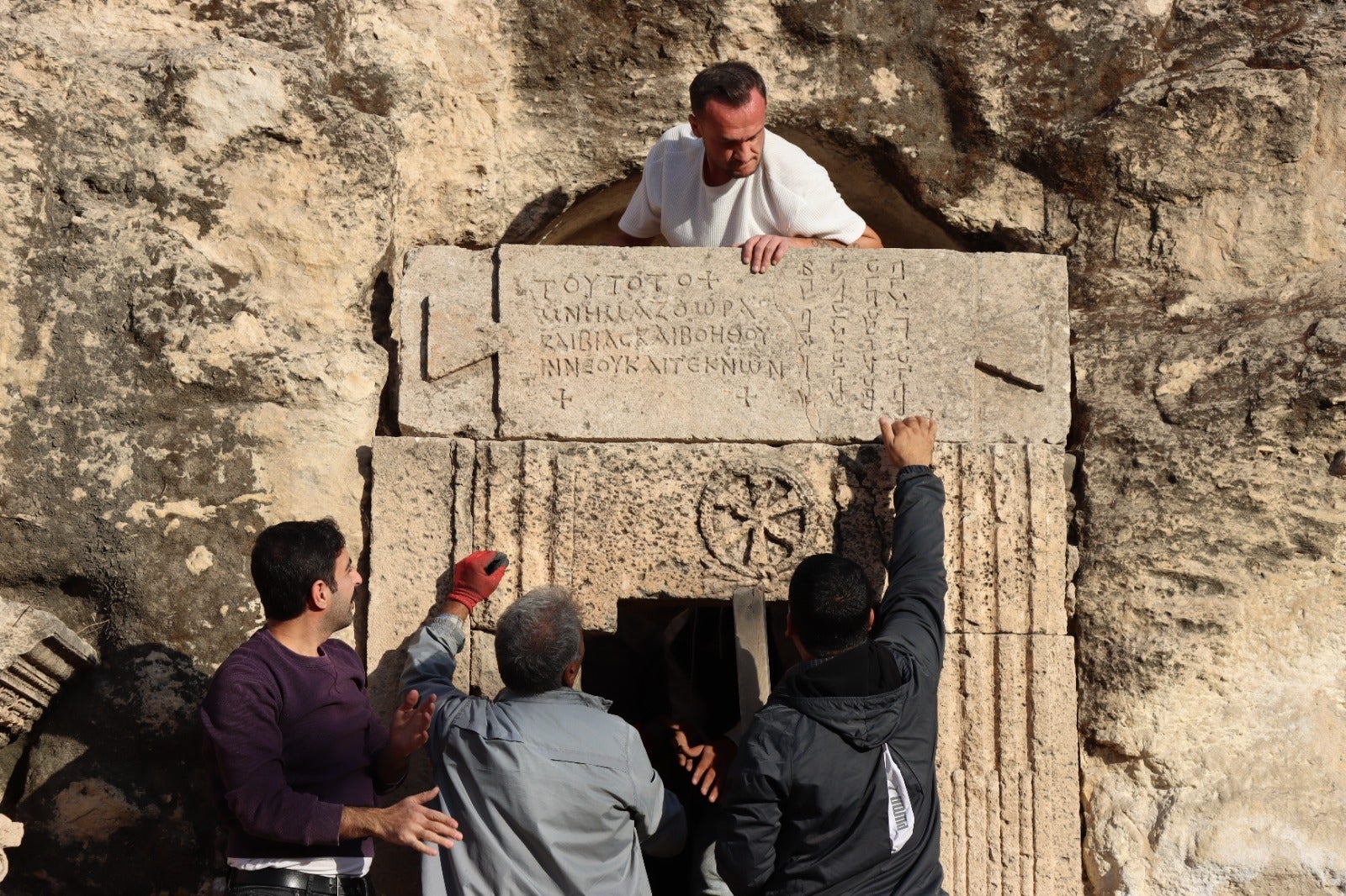 Büyükşehir Belediyesinden yapılan açıklamada, Urfa Büyükşehir Belediyesi ve Müze Müdürlüğü tarafından Turizm Tanıtma Şube Müdürlüğü arkeologları eşliğinde Kızılkoyun Nekropolü'nde yürütülen kazı çalışmalarında, Jesus Christ monogramlı mezar odasının ön tarafında Grek ve Arami dillerinde yazıların yer aldığı bir tabula ansata (kitabelik) bulundu.