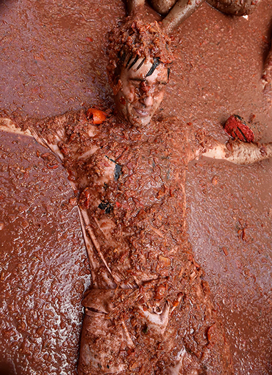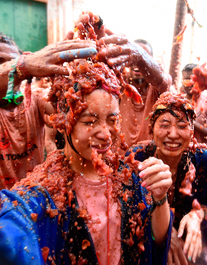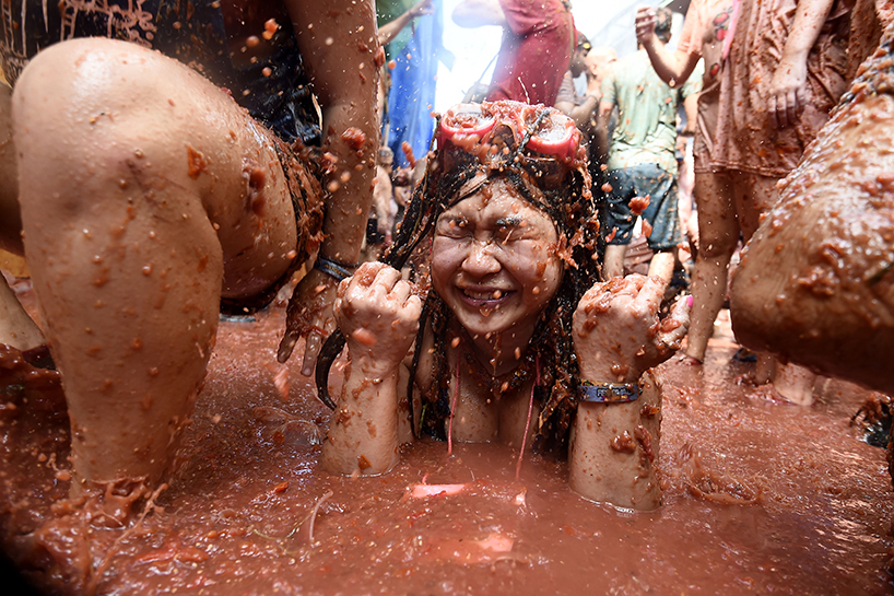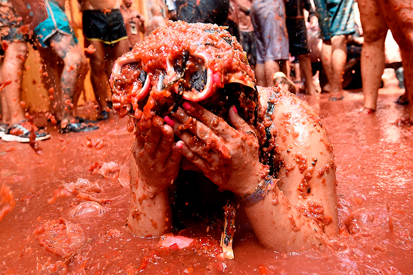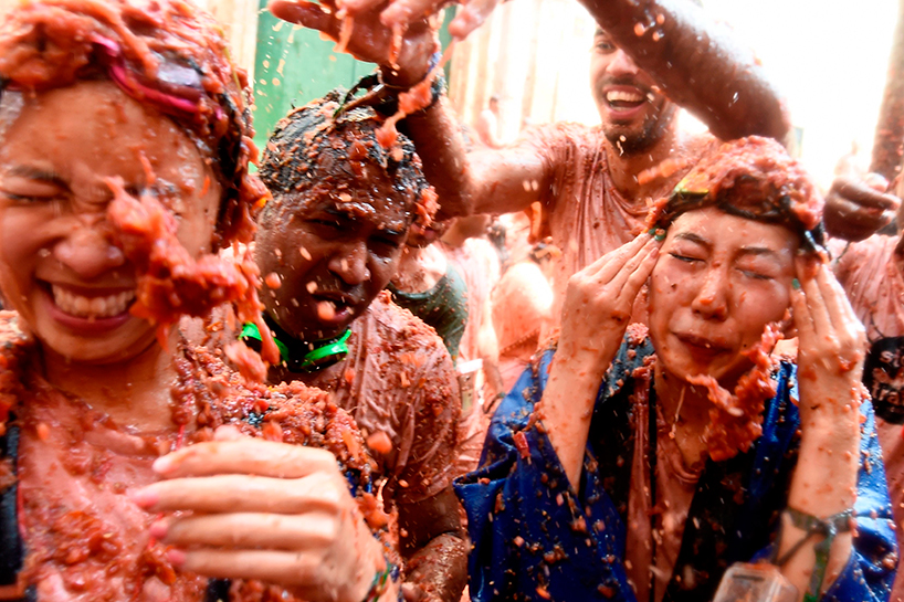 Festivalde yaklaşık 145 ton domates kullanıldı. Her yer kırmızıya büründü. Kimi gözlük, kimi de şapka takarak domateslerden korunmaya çalıştı.