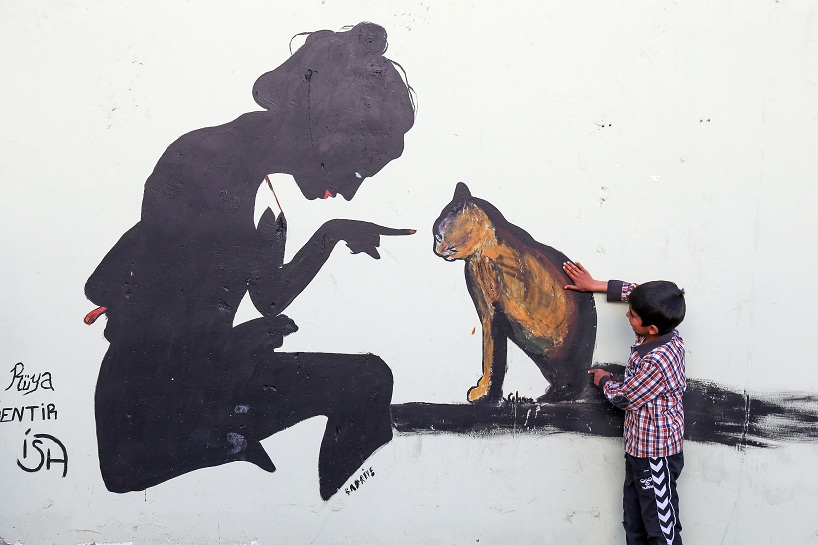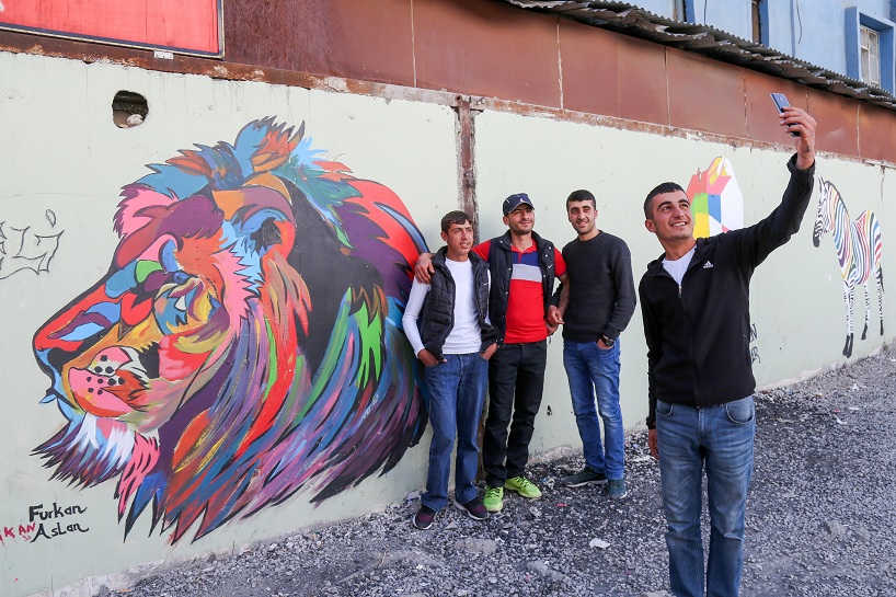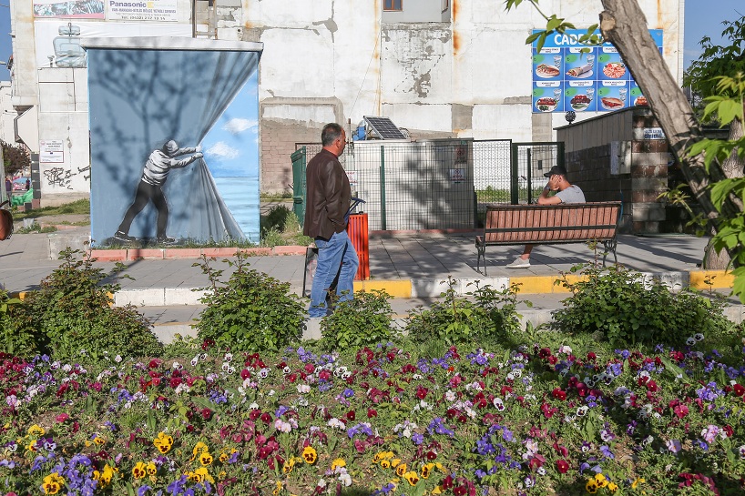 AA - Van'ın İpekyolu Belediyesince hayata geçirilen proje kapsamında, kentin tarihi ve doğal güzellikleri, resimlerle trafo ile sokak duvarlarına yansıtılıyor.