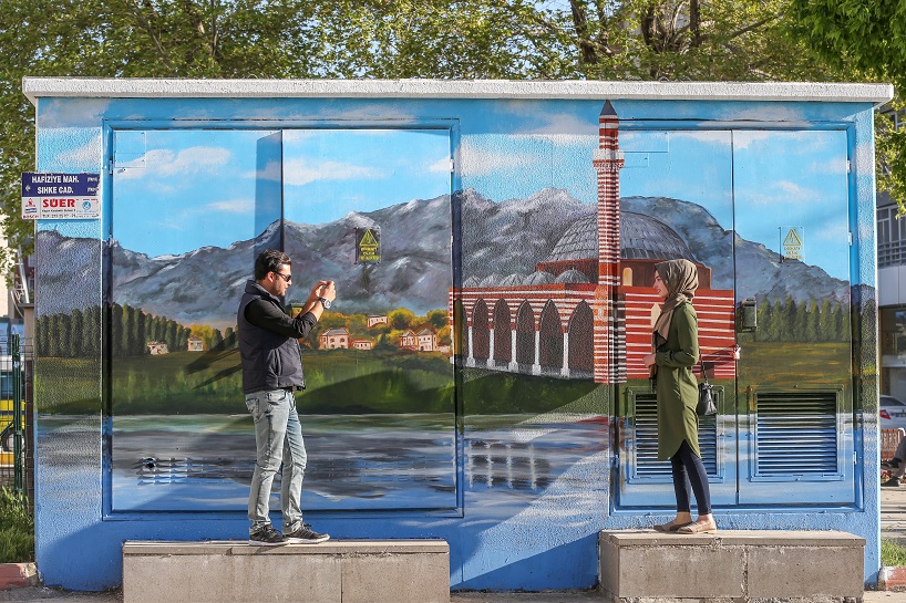 Proje kapsamında, temizliği ve bakımları yapılan trafo ile sokak duvarlarına, 4 ressam tarafından kentin tarihi ve doğal güzelliklerinin resimleri çiziliyor.