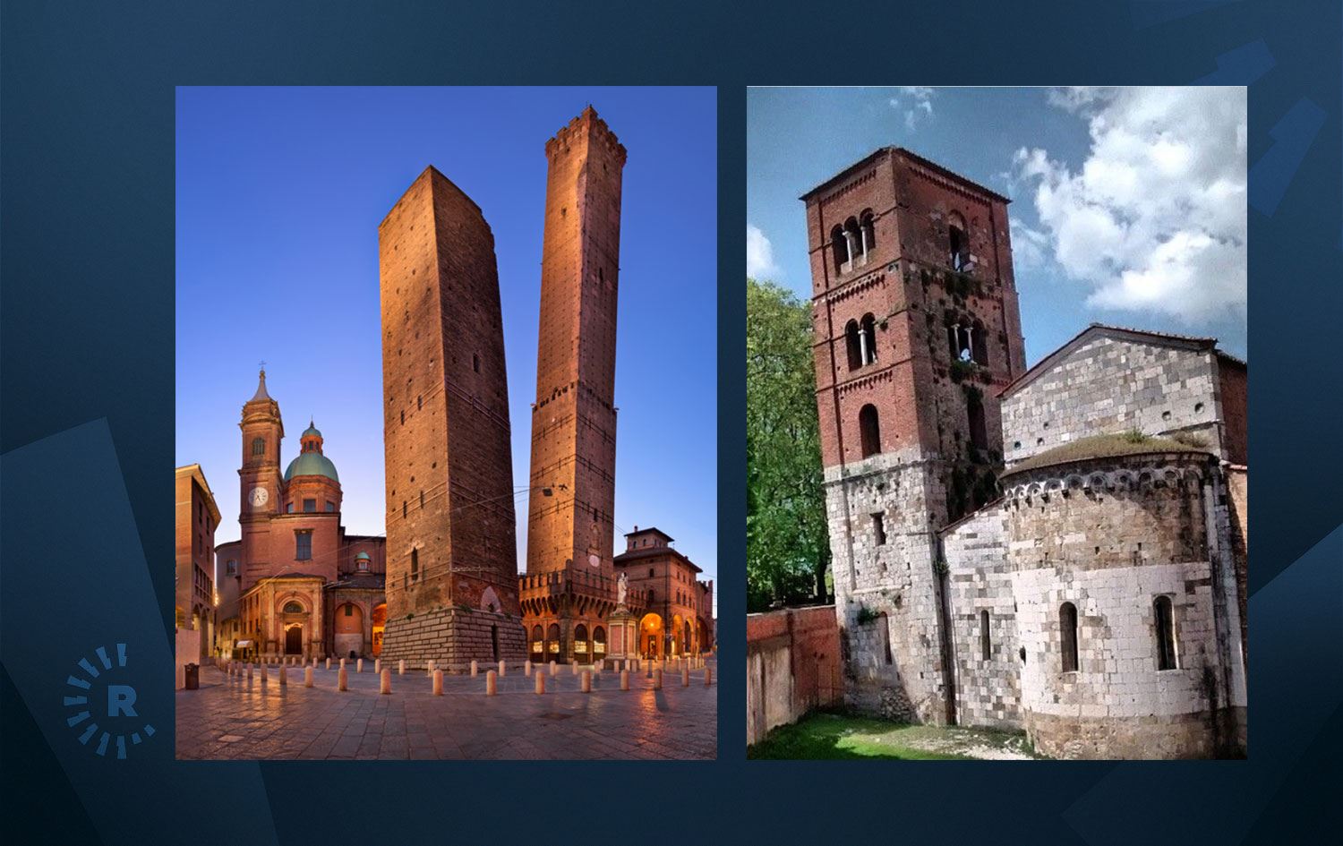 Kentin en önemli simgeleri arasında gösterilen Ortaçağ'dan kalma Garisenda ve Asinelli kuleleri, Piazza di Porta Ravegnana meydanında yer alıyor.