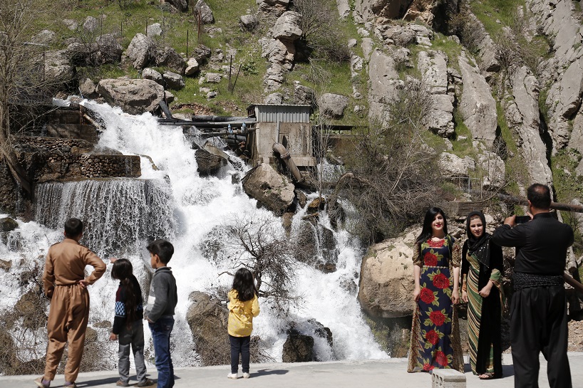 Erbil kent merkezine 80 kilometre mesafede yer alan ilçede bulunan yüksek dağlar, şelaleler ve kanyon turistlerin ilgisini çekiyor. (AA)