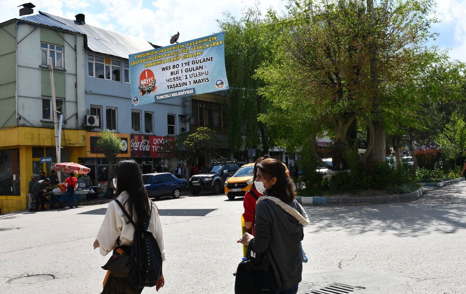Belediye tarafından Cumhuriyet Caddesi üzerinde bulunan alana asılan pankartta farklı dillerde “Yaşasın 1 Mayıs” ve “Emeğimizin, irademizin, yaşamımızın, gasp edilmesine karşı; söz, yetki, karar hakkımıza sahip çıkalım” yazıyordu.
