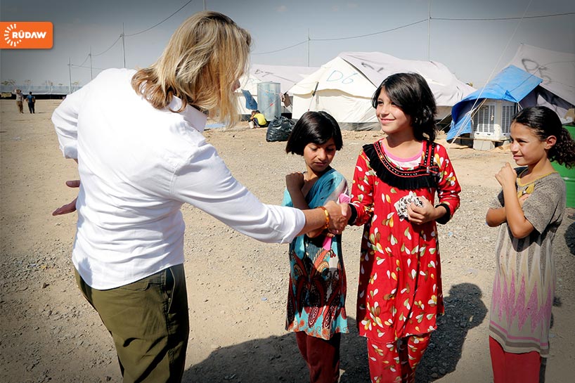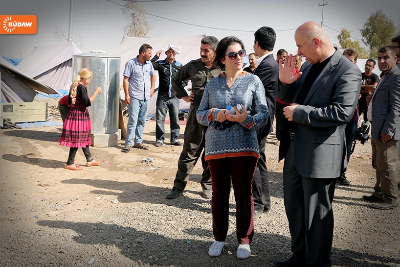 İngiltere Uluslararası Kalkınma Bakanı Justine Greening, Erbil'de Ezidiler'in bulunduğu Bahrike Kampı'nda..
