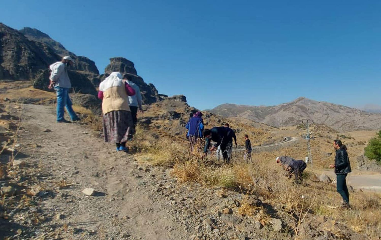 Dersim'in Nazımiye ilçesinde bulunan ve Alevi Kürtler tarafından kutsal kabul edilen Düzgün Baba ziyaretgâhında bir araya gelen Nazımiye Cemevi yönetimi ve halkın katılımıyla toplanan palamutlar cemevi çevresine ekildi.