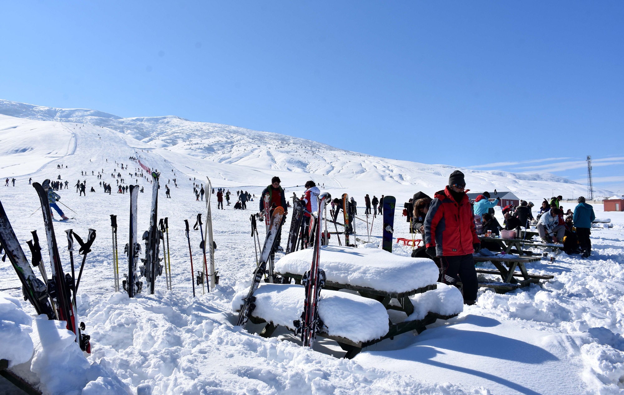 Yarıyıl tatilinin son gününde merkeze akın eden kayakseverler, zirveye ulaşmak için telesiyejlerin önünde uzun kuyruklar oluşturdu.