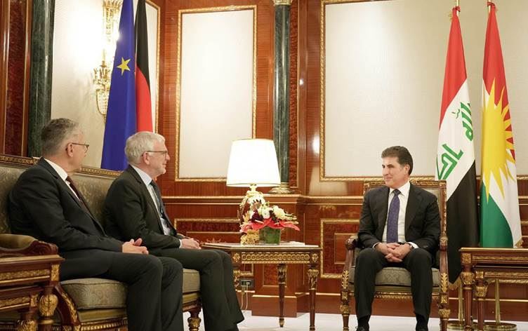 Erbil (Rûdaw) – Başkan Neçirvan Barzani'yle Almanya hükümetinden üst düzey diplomatik heyet arasında gerçekleşen görüşmede Almanya’nın Kürdistan Bölgesi ve Irak ile ilişkilerini geliştirmesinin yanı sıra Erbil-Bağdat ilişkileri değerlendirildi.