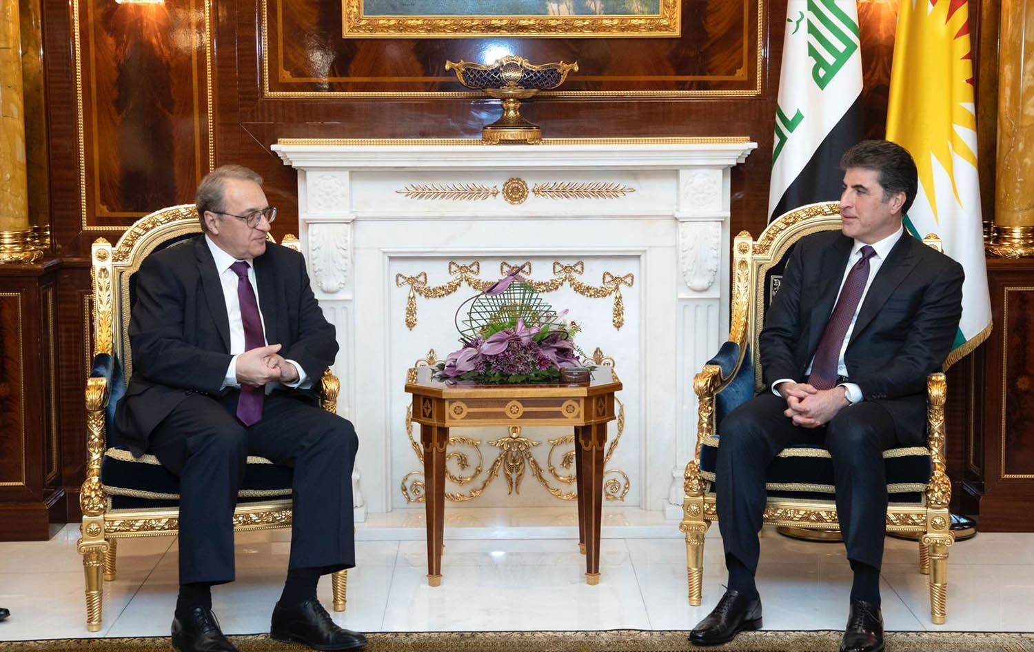 Erbil (Rûdaw) – Başkan Neçirvan Barzani, Rusya Devlet Başkanı Vladimir Putin’in Ortadoğu ve Kuzey Afrika Özel Temsilcisi ve Dışişleri Bakan Yardımcısı Mikhail Bogdanov ile bir araya geldi.