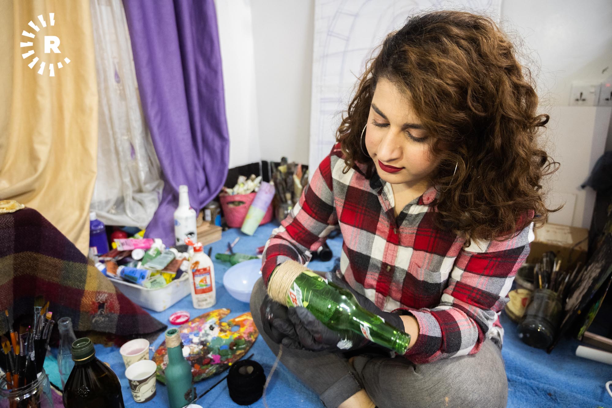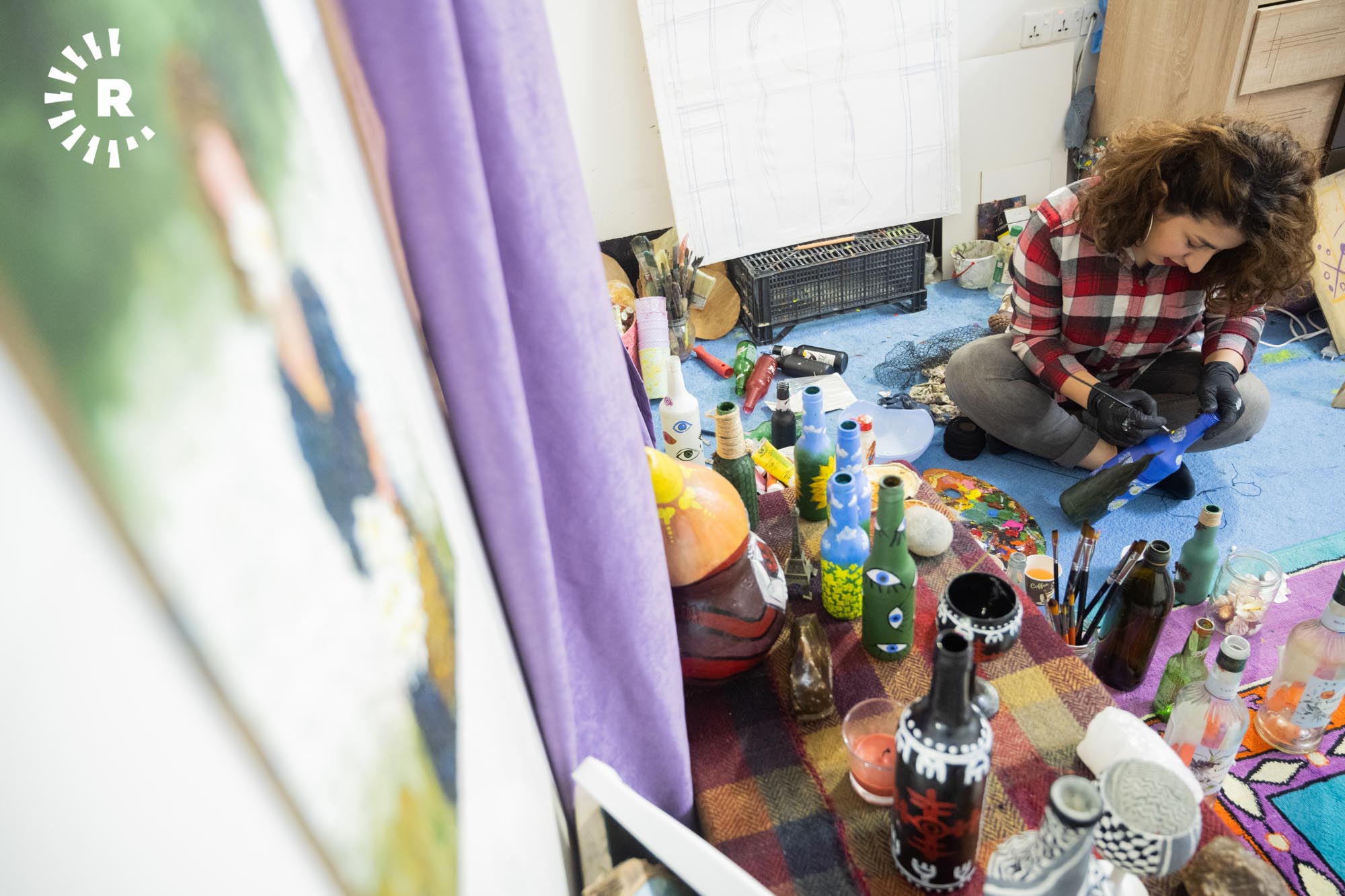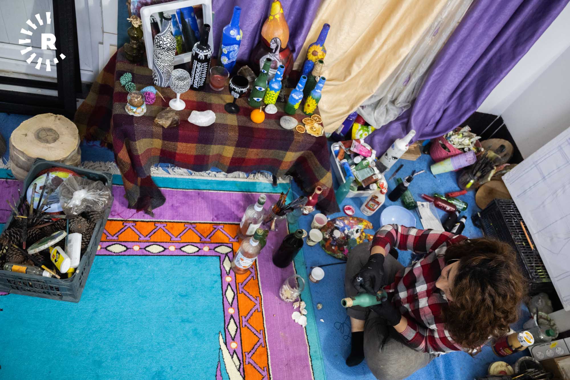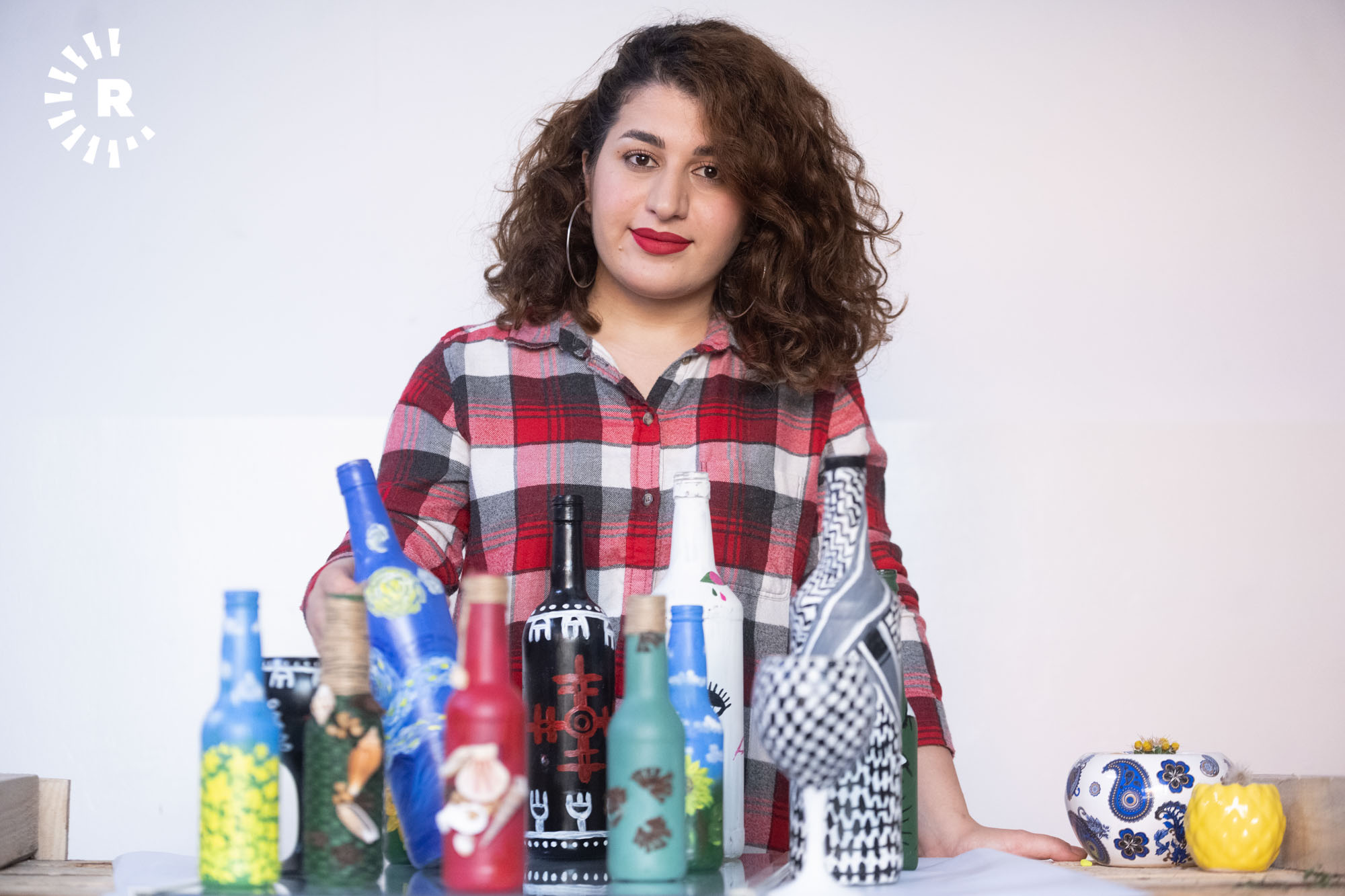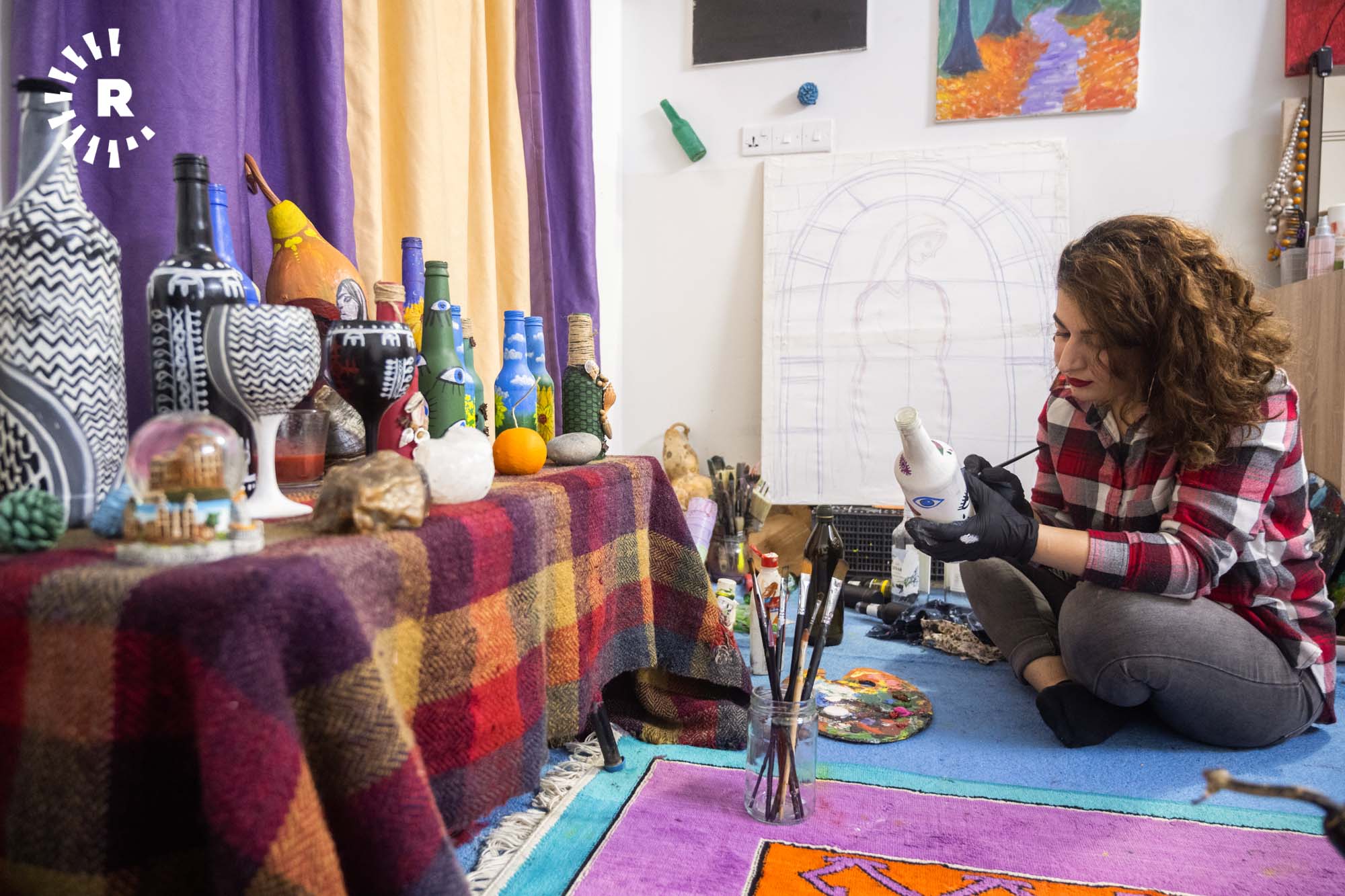 Erbil (Rûdaw) – Erbil’de, ressam Estêre Xazi (24), dört yıldır kullanılmamak süretiyle sokağa atılan cam şişeleri toplayıp renklendiriyor.