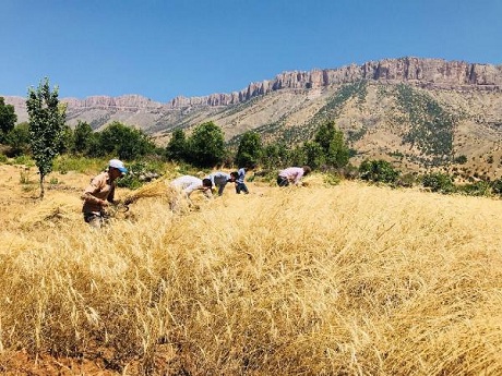 Yaptıkları çalışmanın zorluklarını anlatan bir çiftçi, "Bölgede iş makineleri kullanımı, arazi şartları nedeniyle imkansız olduğu için dedelerimizden ve babalarımızdan kalma 'orak' usulüyle buğday biçiyoruz. Bu çalışmalarımız sonbahar aylarına kadar sürüyor. Aşırı sıcaklardan çok etkileniyoruz. Bu nedenle çalışmalarımıza zaman zaman mola verip, havuza girerek, serinlemeye çalışıyoruz" diye konuştu.