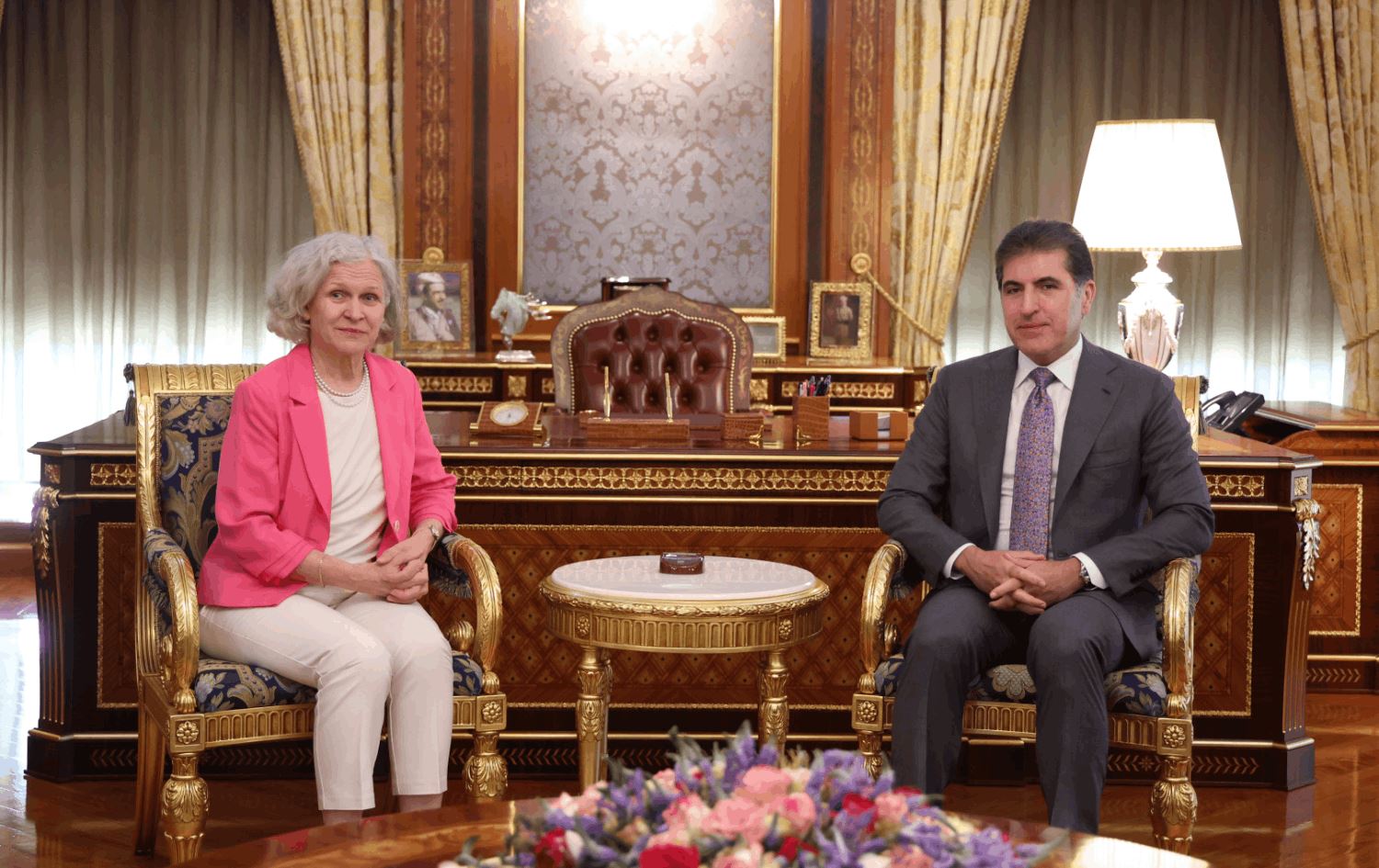 Erbil (Rûdaw) - Başkan Neçirvan Barzani, görev süresinin sona ermesi dolayısıyla Finlandiya’nın Irak Büyükelçisi Anu Saarela ile Erbil’de bir araya geldi.