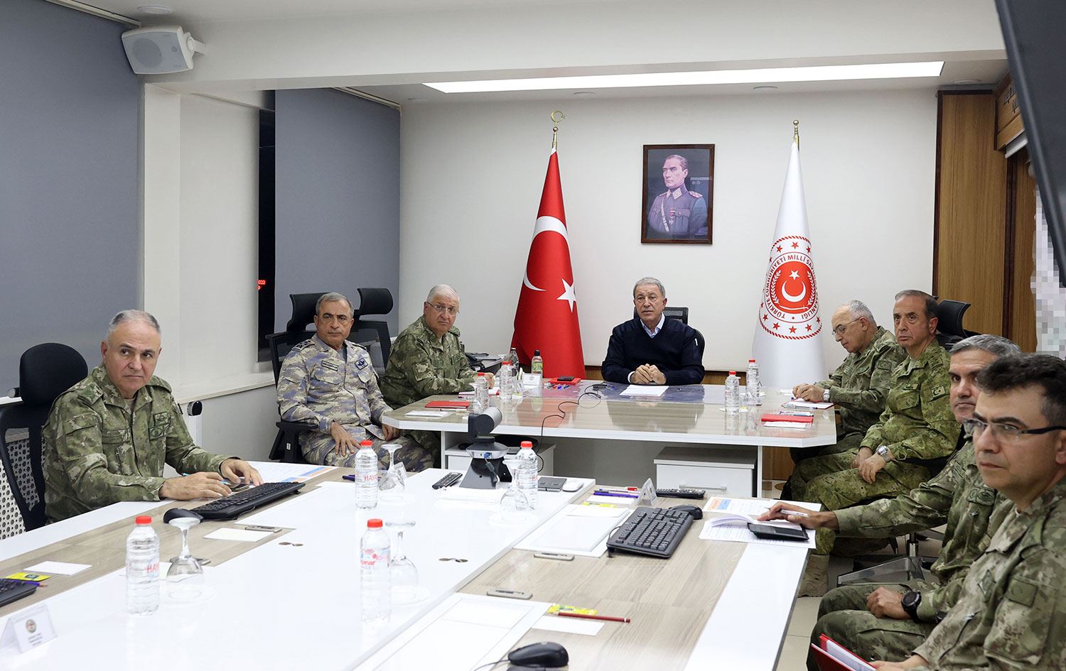 Videokonferans ile toplantıya katılan Akar, sahadaki son durumu ilişkin bilgi aldı.