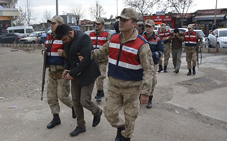 Viranşehir'deki adreslerine düzenlenen operasyonda gözaltına alınan şüpheliler, jandarmadaki işlemlerin ardından adliyeye sevk edildi.
