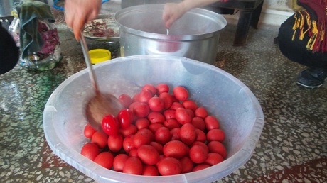 Paskalya yumurtalarını boyarken Rûdaw muhabirinin sorularını yanıtlayan Semiha Demir, "Büyüklerimizin bayramı, Müslüman olduk fakat ayine katılacağım" dedi. Demir, büyük bir katılım bekledikleri için toplam 1100 yumurta boyadıklarını belirtti.