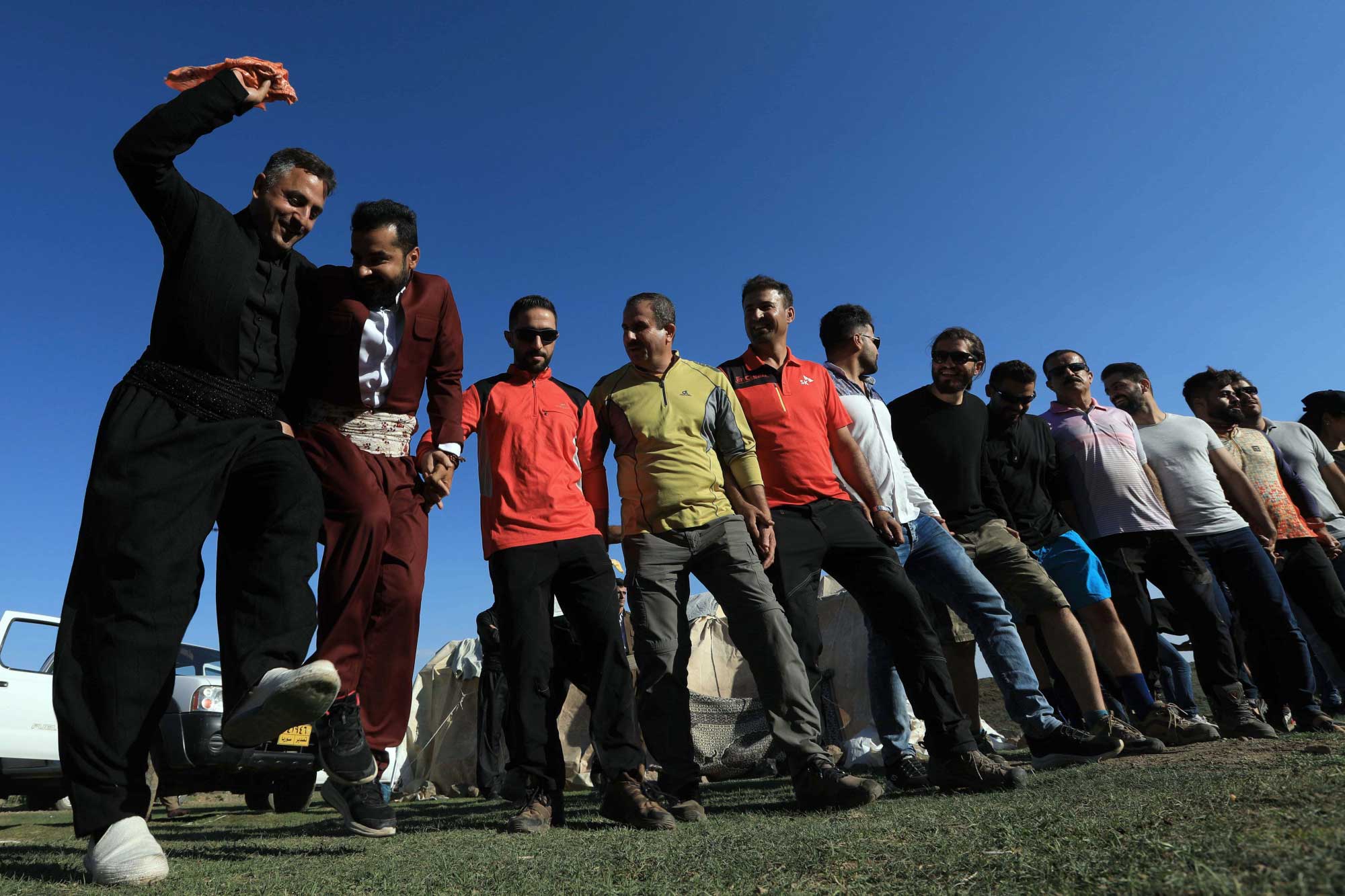 Yeni evli çift, Erbil’in Çoman ilçesi sınırları içerisinde bulunan 3.607 metre yüksekliğindeki Helgurd Dağı’na yaya çıkarak burada halay tuttu.
