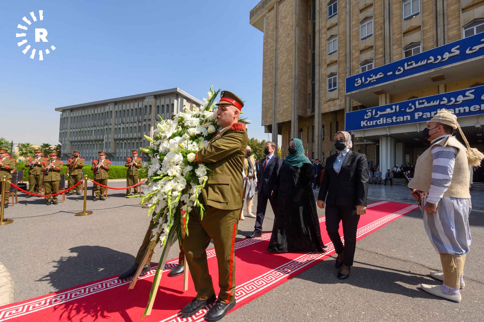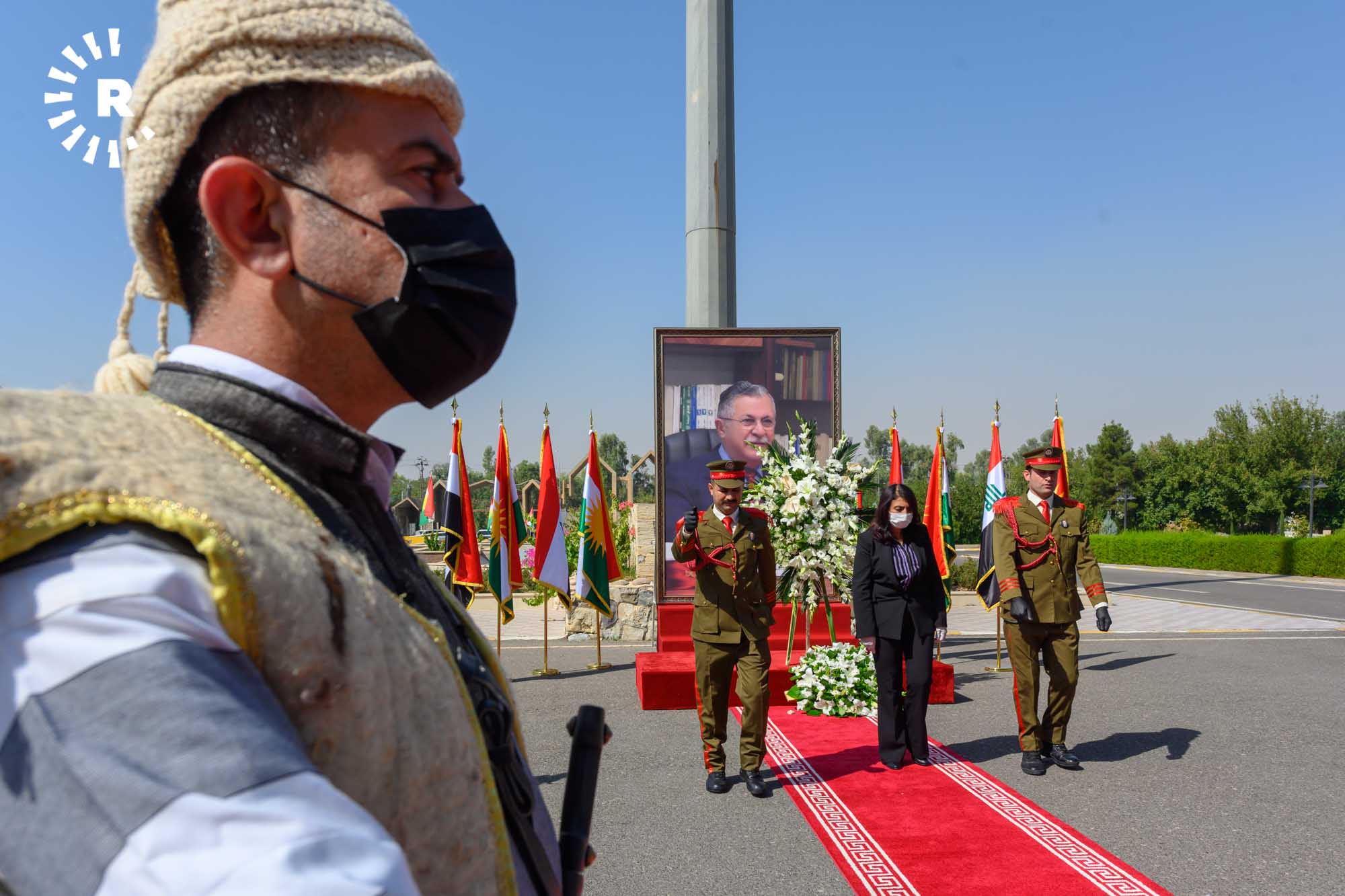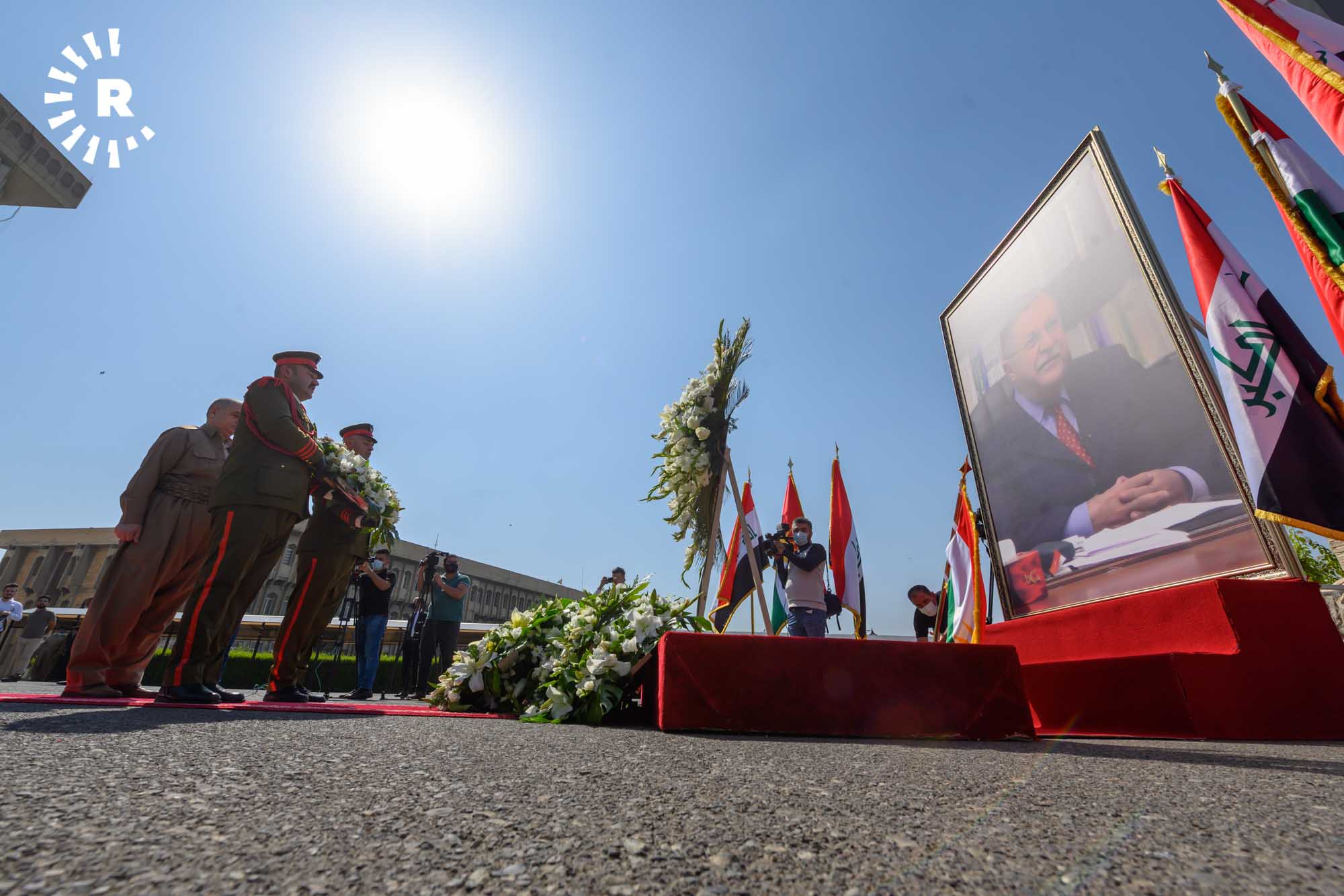 Daha sonra Parlamento’daki grupların başkanları Talabani’nin fotoğrafına çelenk bıraktı.
