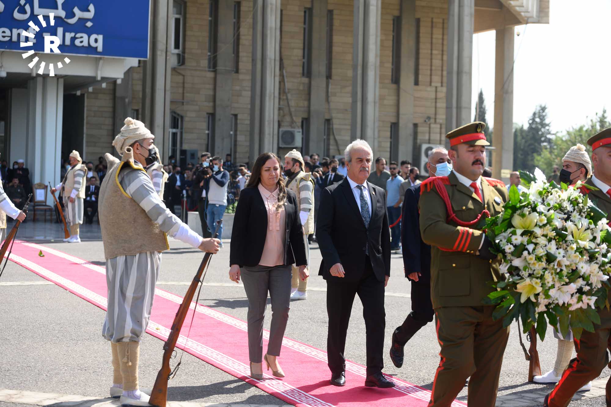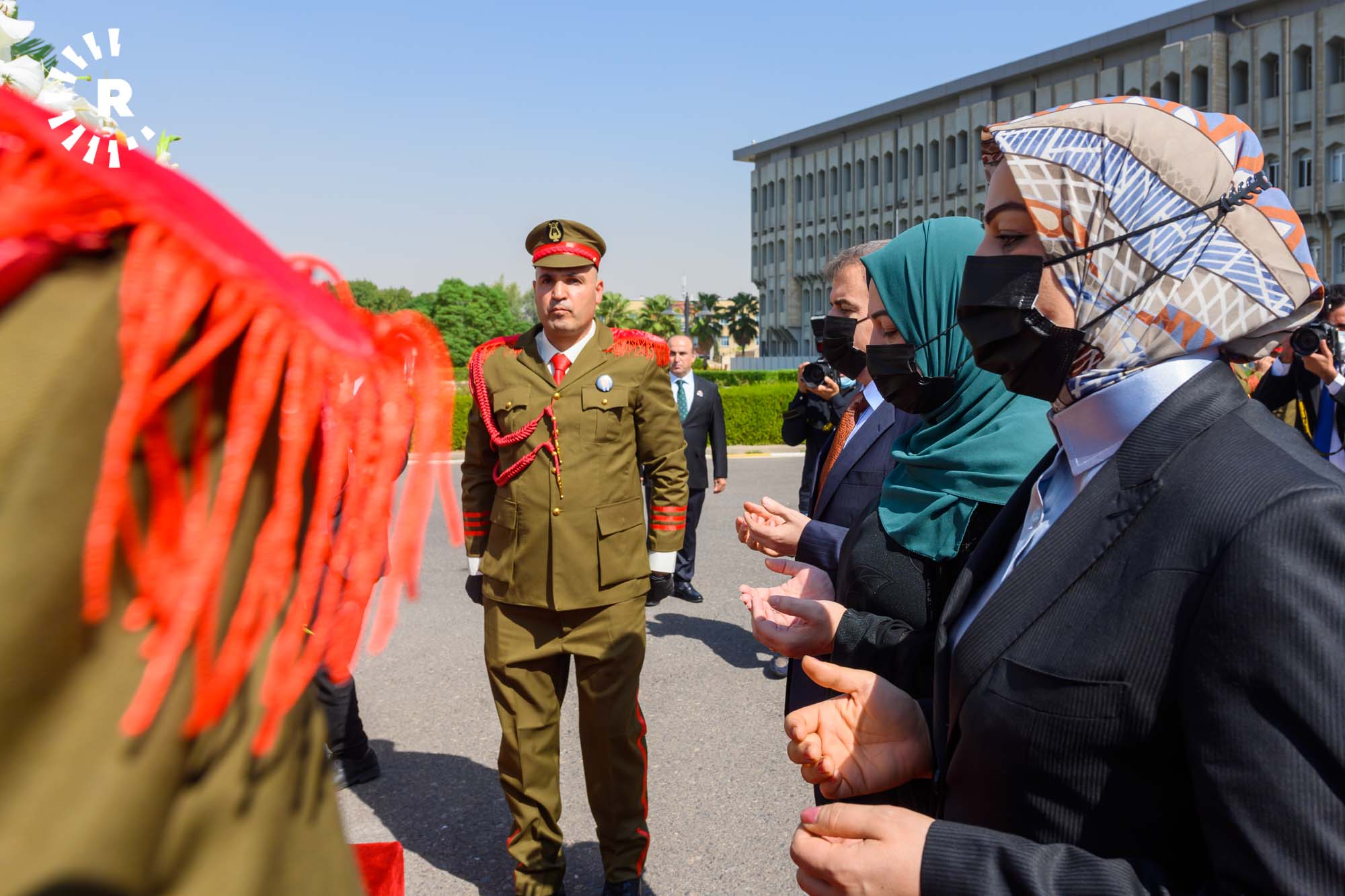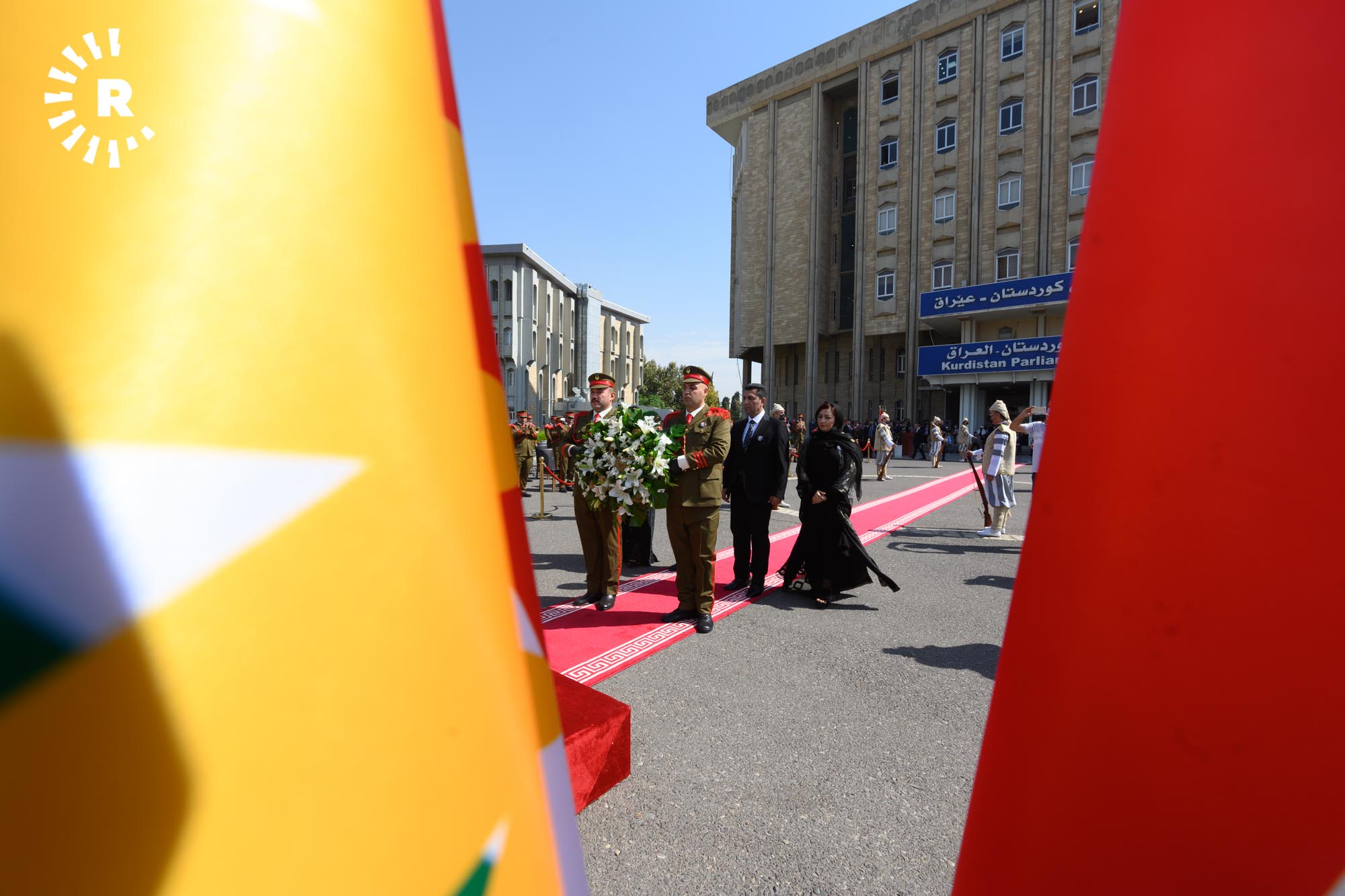 Daha sonra Parlamento’daki grupların başkanları Talabani’nin fotoğrafına çelenk bıraktı.