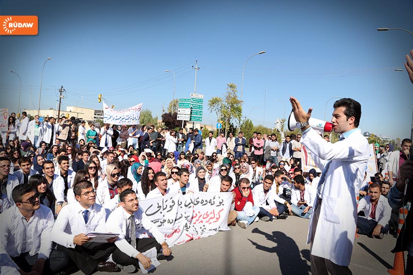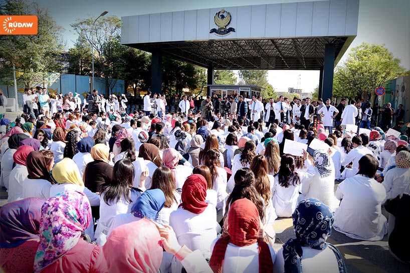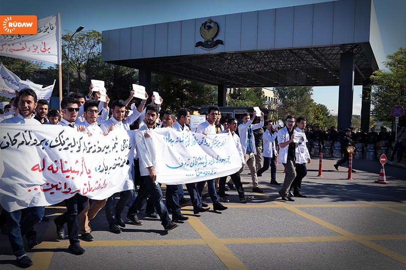 خۆپێشاندانی خوێندکارانی کۆلێژی هەولێریی پزیشکی 1