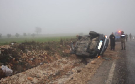 Takla atarak, şarampole devrilen otomobilin sürücüsü Çelik ile otomobildeki 2 çocuğu kazadan yara almadan kurtulurken ismi henüz öğrenilemeyen eşi yaralandı.