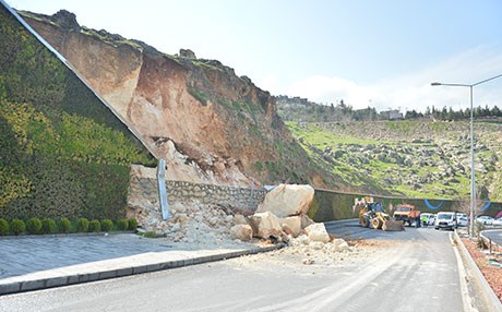 Heyelan sonucu büyük kaya parçaları, 1. Cadde'ye çıkan eski Mardin yoluna yuvarlandı.