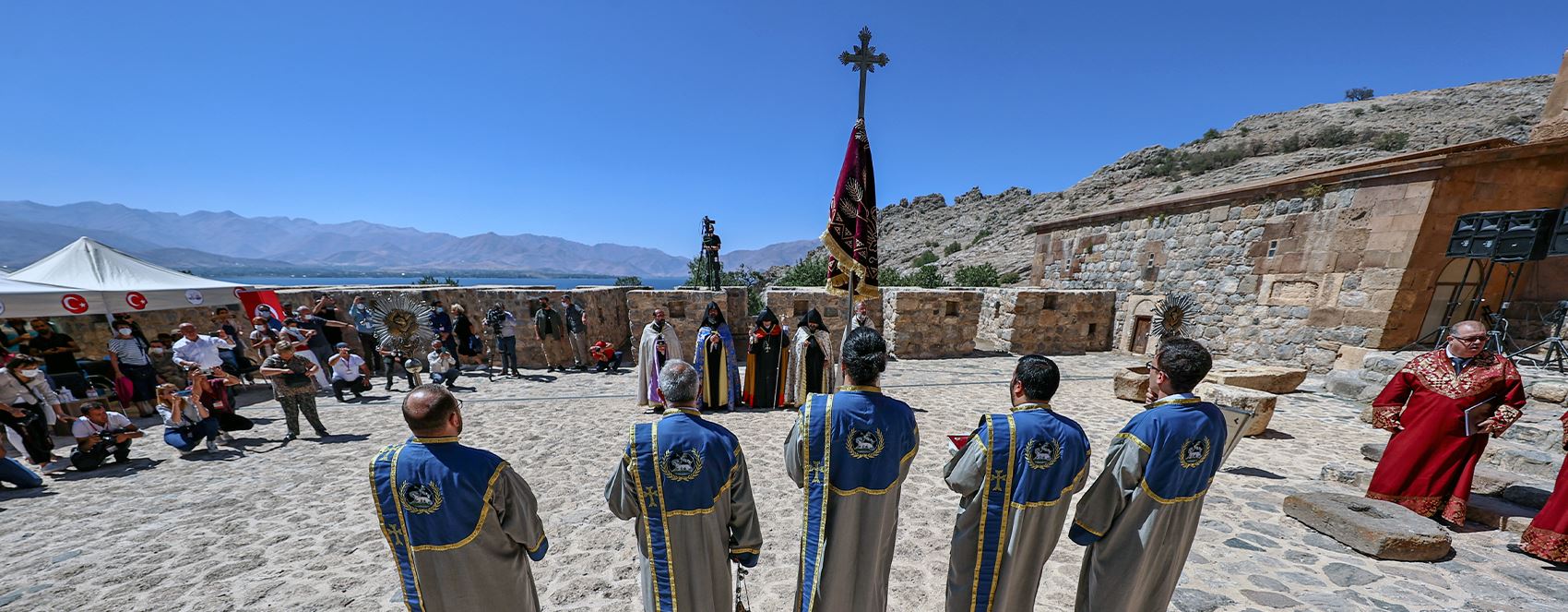 Sabah saatlerinde Gevaş ilçesindeki iskeleden, beraberindeki din adamlarıyla adaya gelen Türkiye Ermenileri Patrikliği Genel Sekreteri ve Ruhani Meclis Başkanı Başrahip Tatul Anuşyan ayini yönetti.