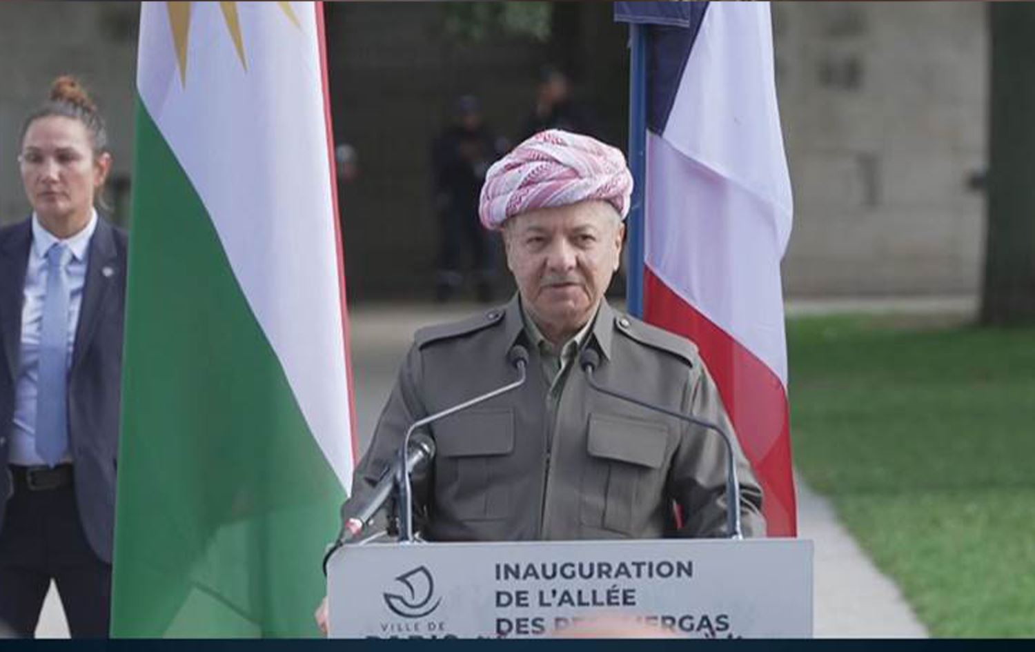 Törende yaptığı konuşmada Başkan Mesud arzani, "Bugün Kürt halkının için tarihi bir gündür. Fransa, tarih boyunca sürekli olarak Kürt halkına karşı insani ve dostane bir duruş sergilemiştir" ifadelerini kullandı.