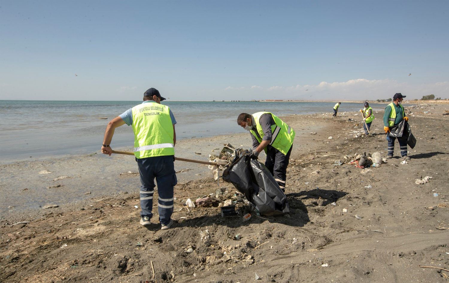 Bu kapsamda, Van Gölü'nün yaklaşık 3 kilometrelik sahil bölümünde 40, göle dökülen Akköprü Deresi'nde de 5 ton çöp toplayan ekipler, poşetlere doldurdukları çöpü kamyonlarla atık depolama alanına taşıdı.