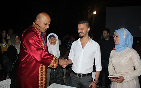 Dağın altında bulunan mağarada Tuzluca Belediye Başkanı Ahmet Sait Sadrettin Türkan tarafından 17 çiftin nikahı kıyıldı.