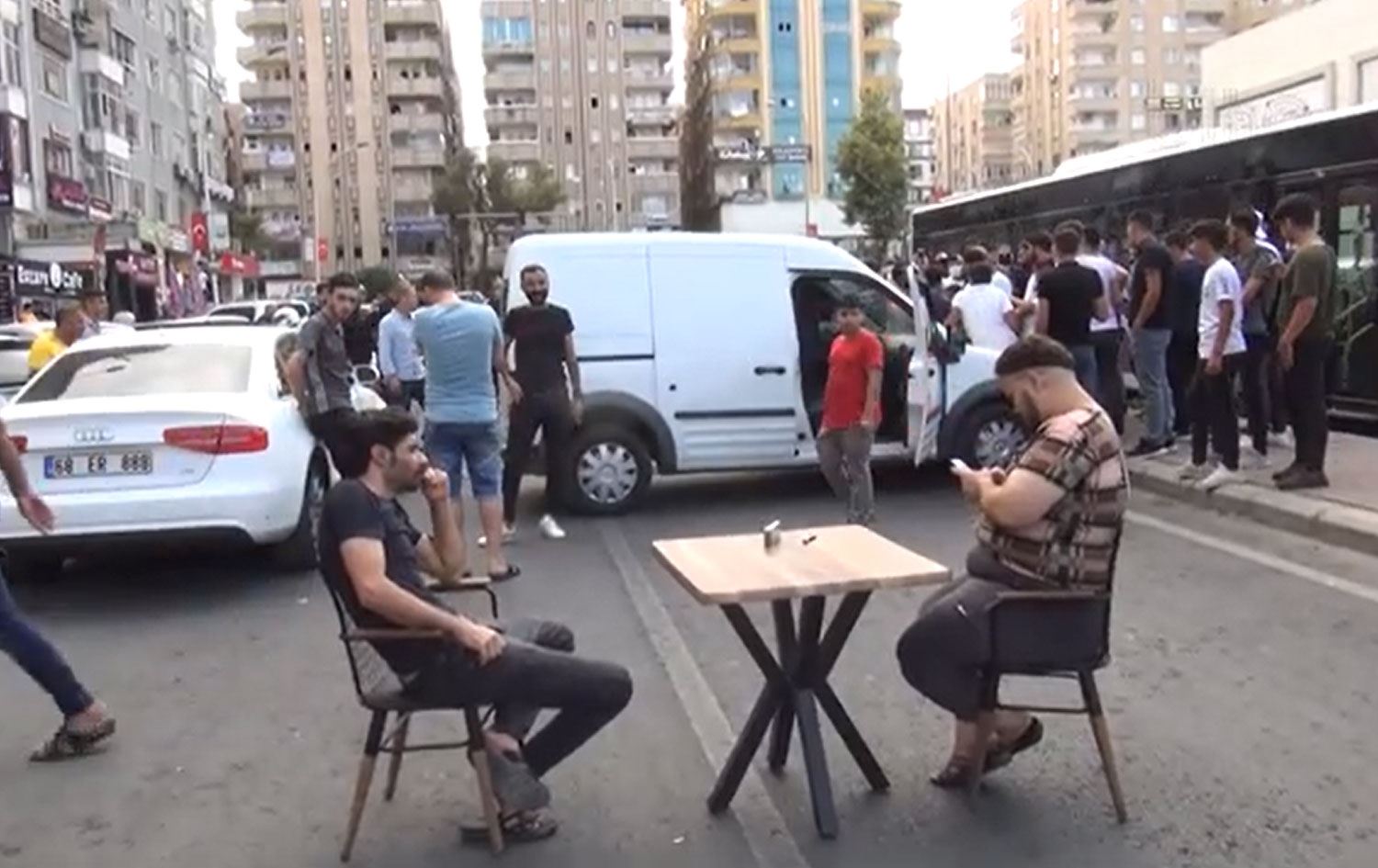 İki esnafın, cadde ortasına masa ve sandalye atarak protestoya destek vermesi ise ilginç görüntü oluşturdu.