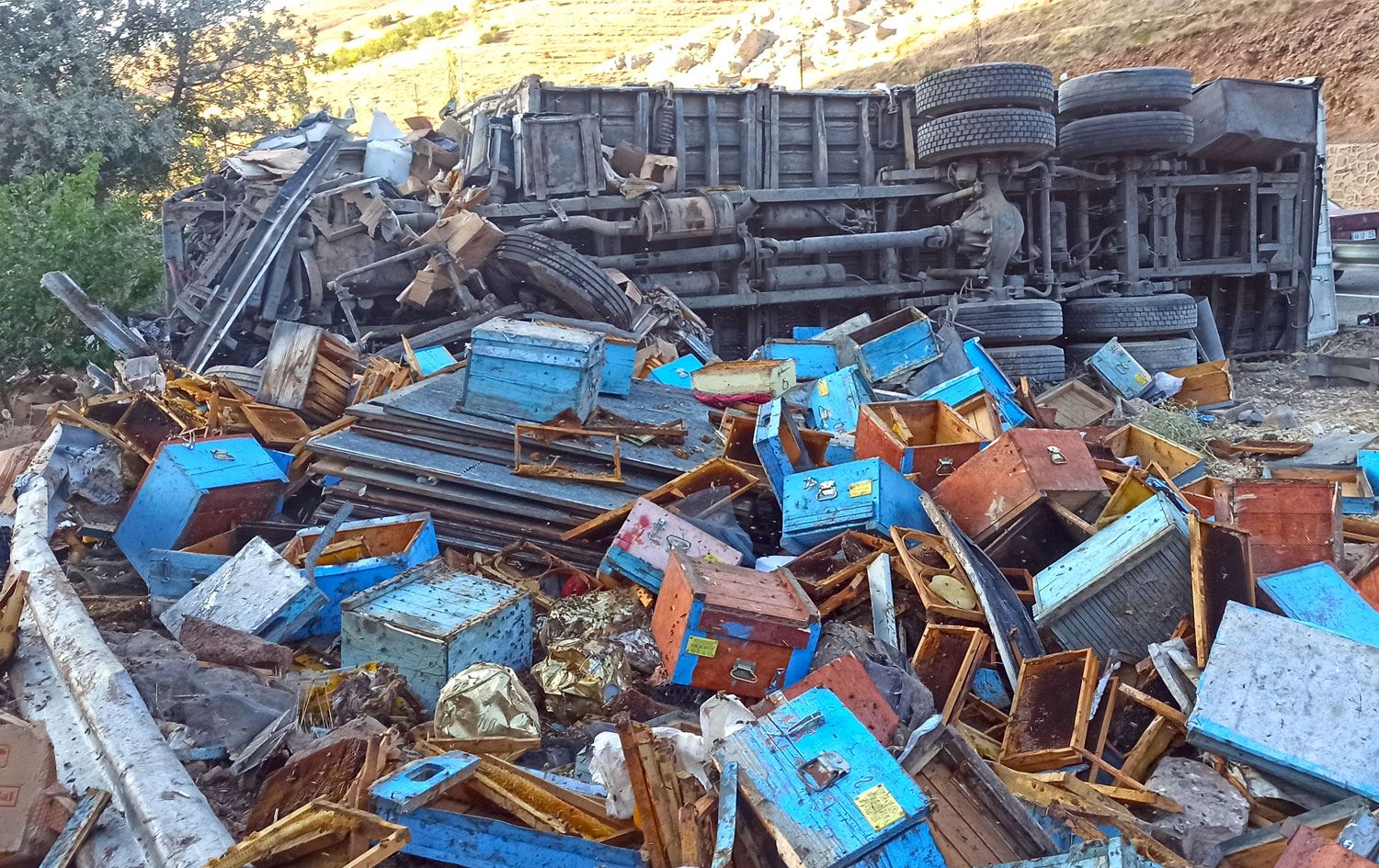Malatya'nın Darende ilçesinde arı kovanı ve bal yüklü kamyonun devrilmesi sonucu 3 kişi öldü.