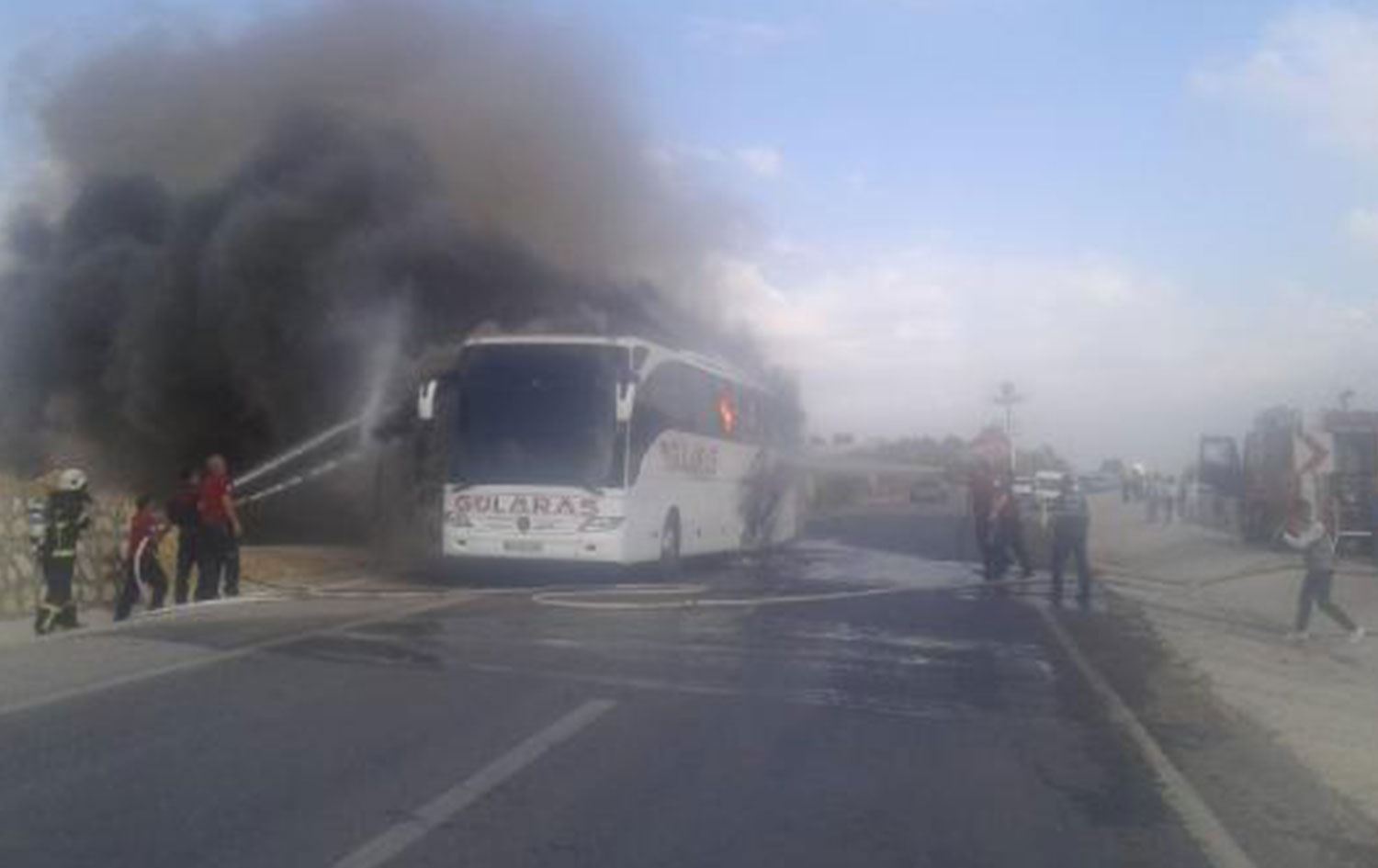 Alevleri gören Atabay, otobüsü yol kenarına çekip, yolcuları tahliye etti. Motor kısmındaki yangın, rüzgarın etkisiyle kısa sürede büyüyerek otobüsün tamamını sardı. İhbar üzerine gelen itfaiye ekiplerinin müdahalesi ile yangın kısa sürede söndürüldü.