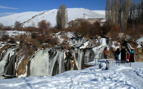 Haber Merkezi - Van'ın Muradiye ilçesindeki şelale, olumsuz hava koşulları nedeniyle kısmen dondu.